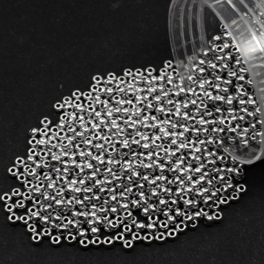 10/0 01700 Preciosa Czech Glass Seed Beads Rocailles 2.3mm. Silver Metallic.