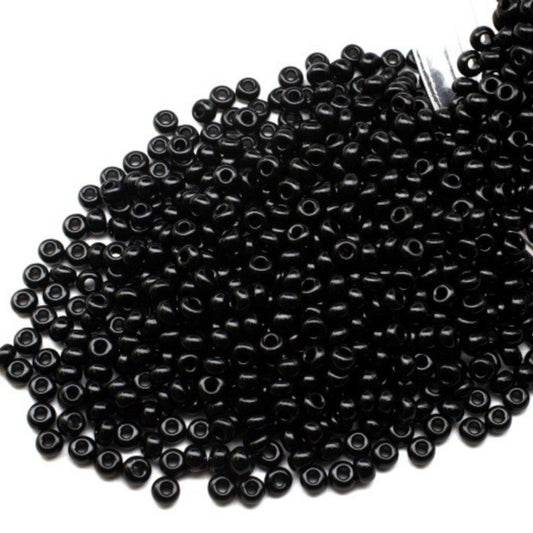 10/0 23980 Preciosa Czech Glass Seed Beads Rocailles 2.3mm. Opaque black.
