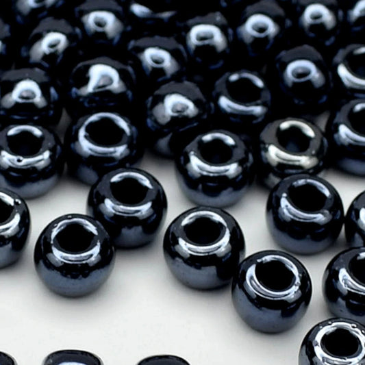 2/0 49102 Preciosa Чехски стъклени Малки Мъниста Рокайли 6.1mm. Черен непрозрачен ирис.
