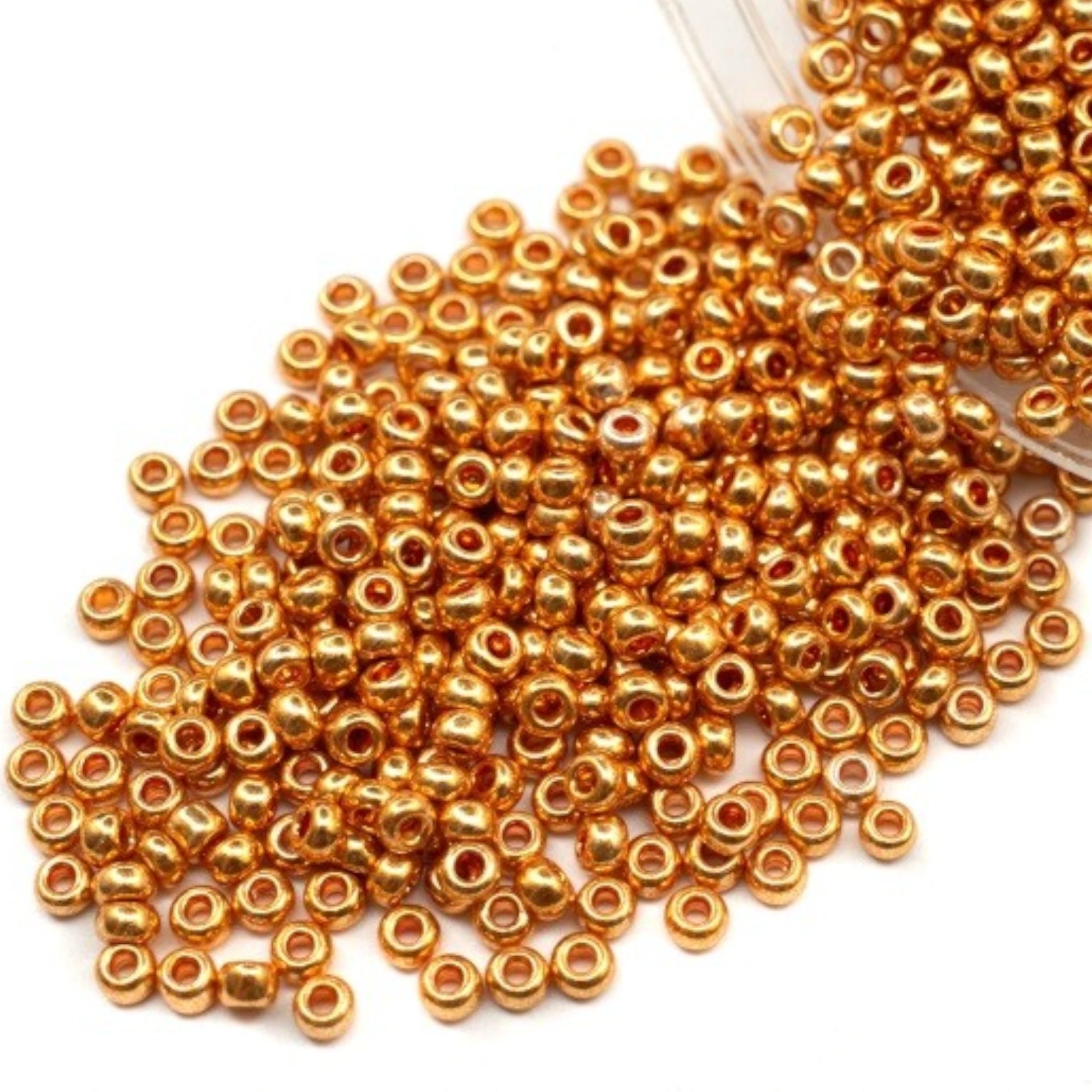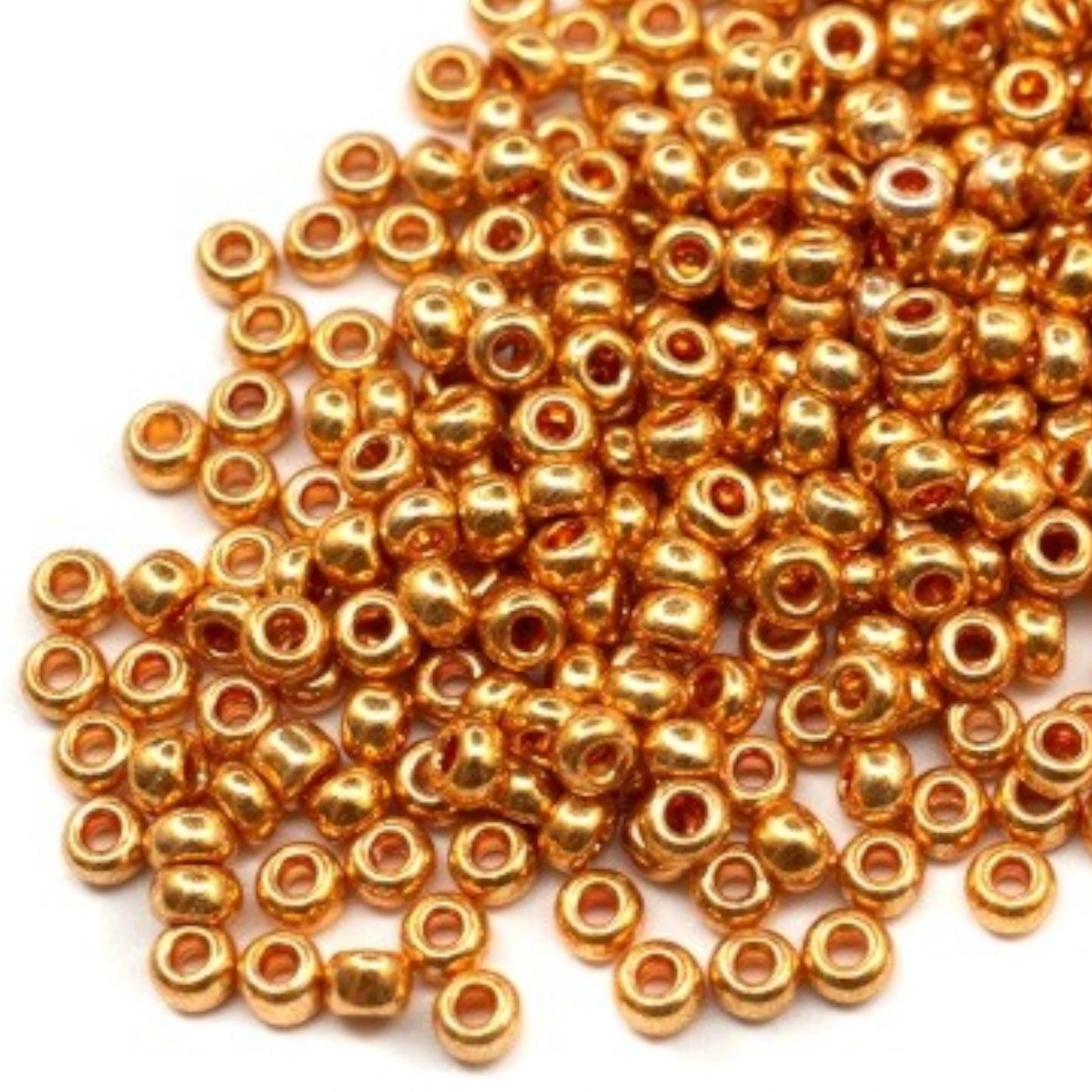 6/0 18389 Preciosa Чехски стъклени Малки Мъниста Рокайли 4.1mm. Златисто оранжев - Металик.