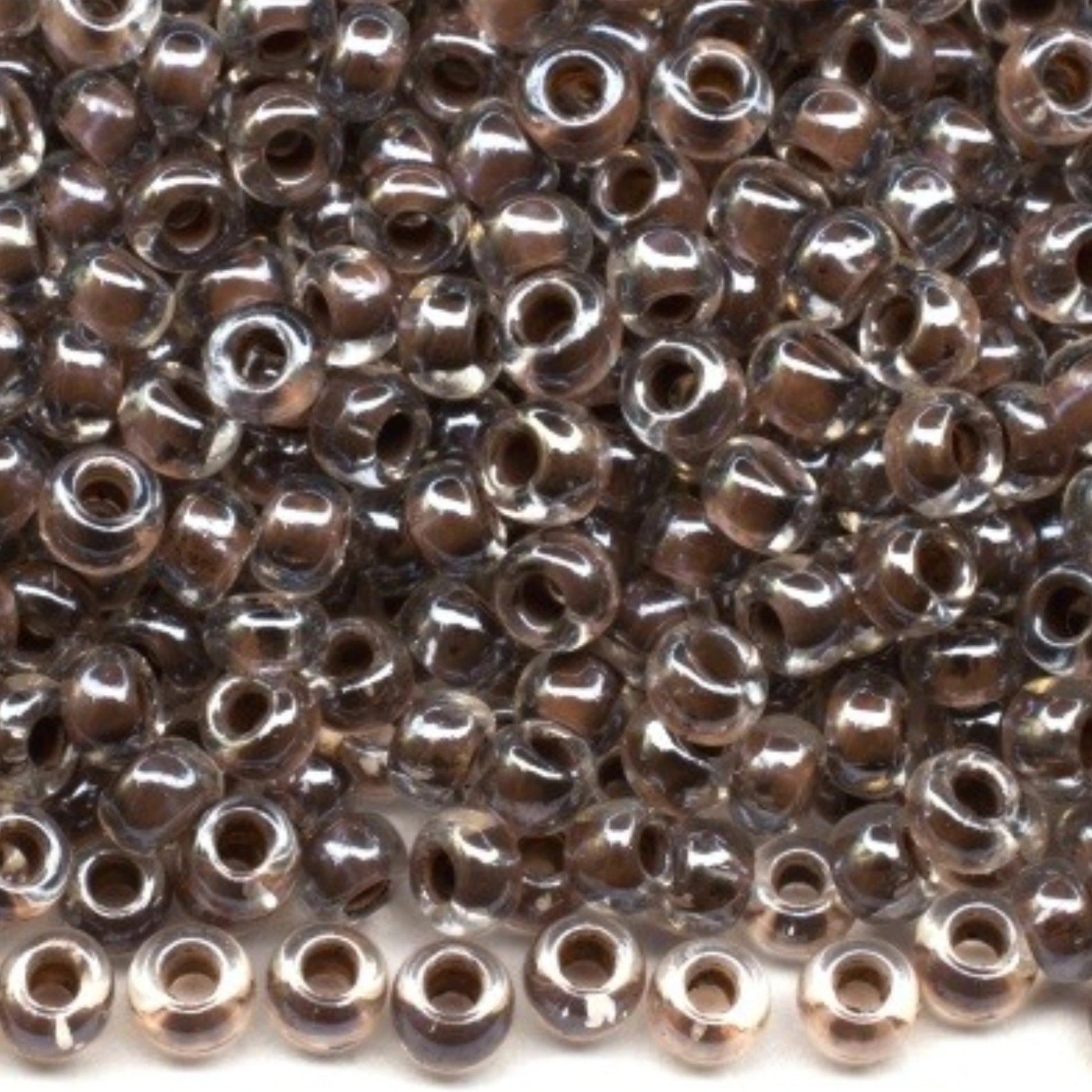 10/0 38618 Preciosa tjekkiske glasperler Rocailles 2,3 mm. Krystalfarvet med brun inderside Sfinx.