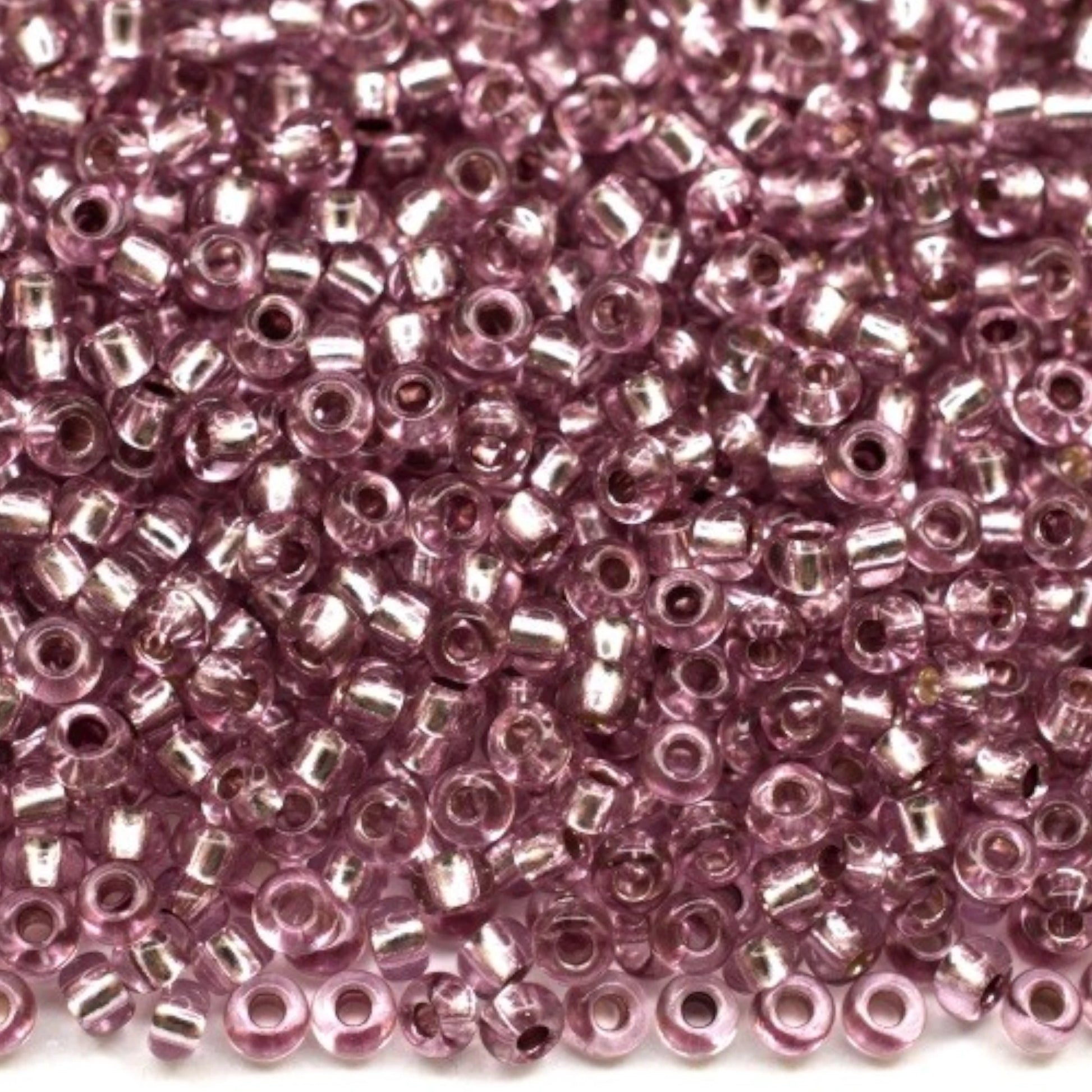 10/0 78195 Preciosa Czech Glass Perler Rocailles 2.3mm. Lilla Pink 2 farvet Krystal, Sølvbelagt.