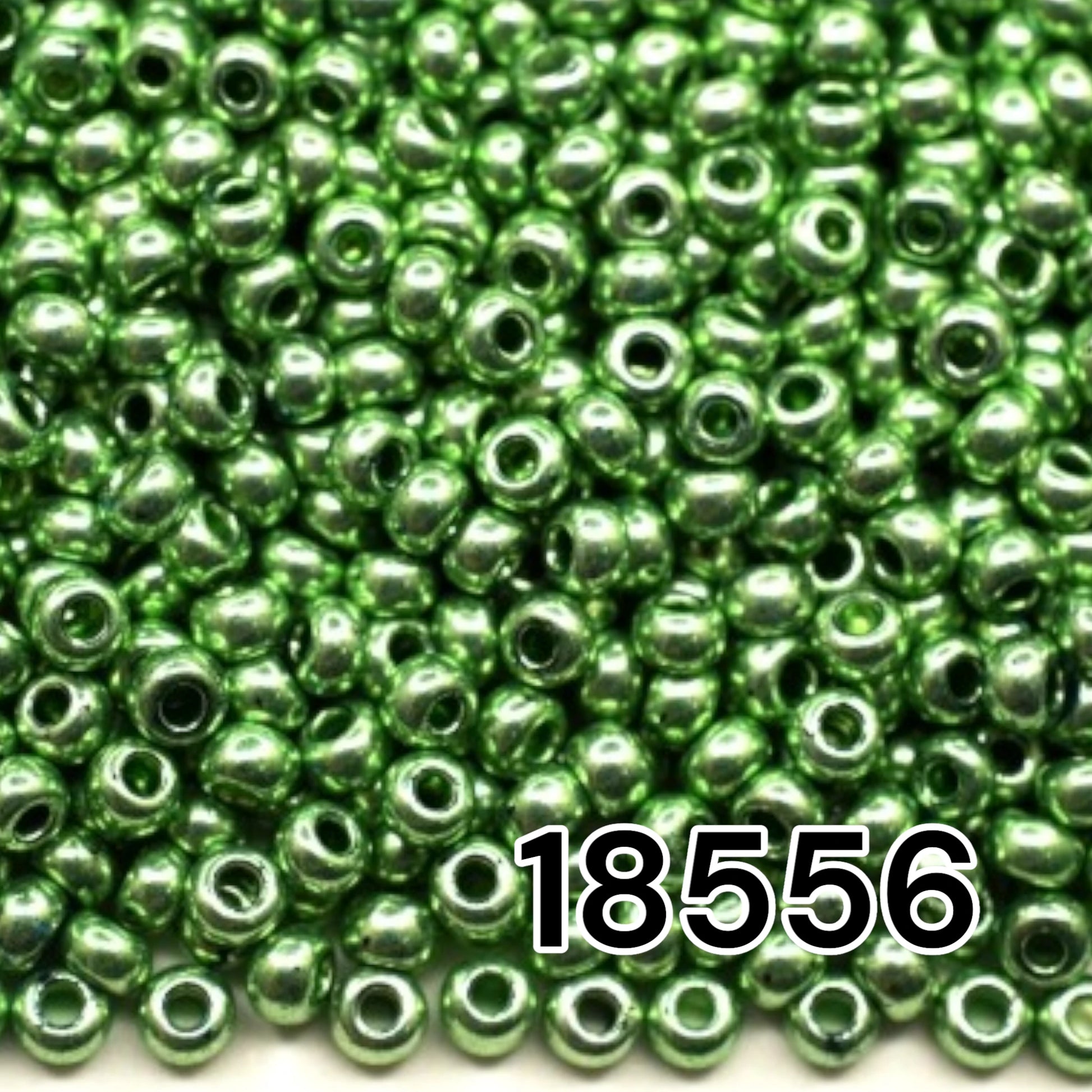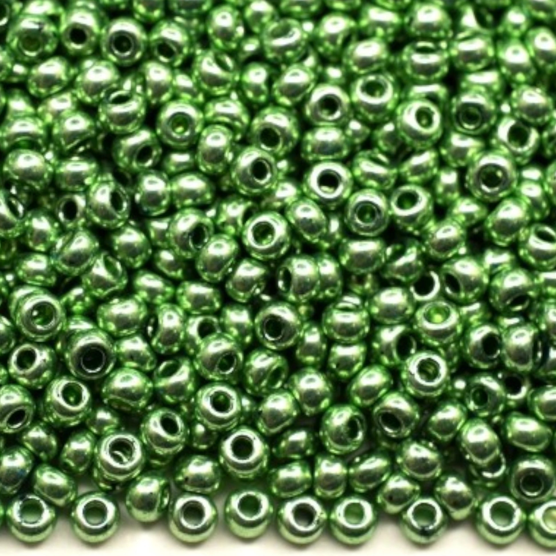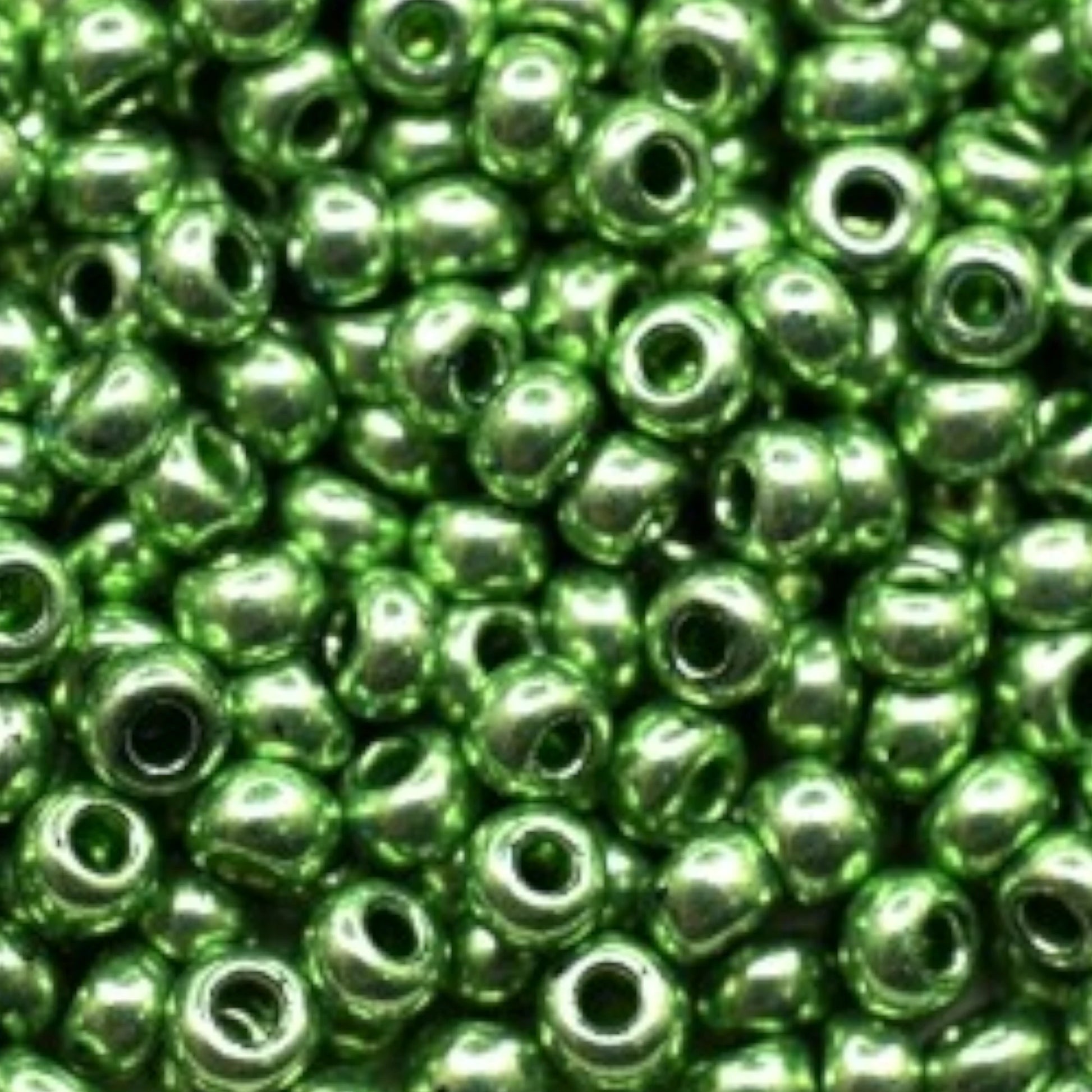 6/0 18556 Preciosa Czech Glass Perler Rocailles 4.1mm. Grøn Metallic.