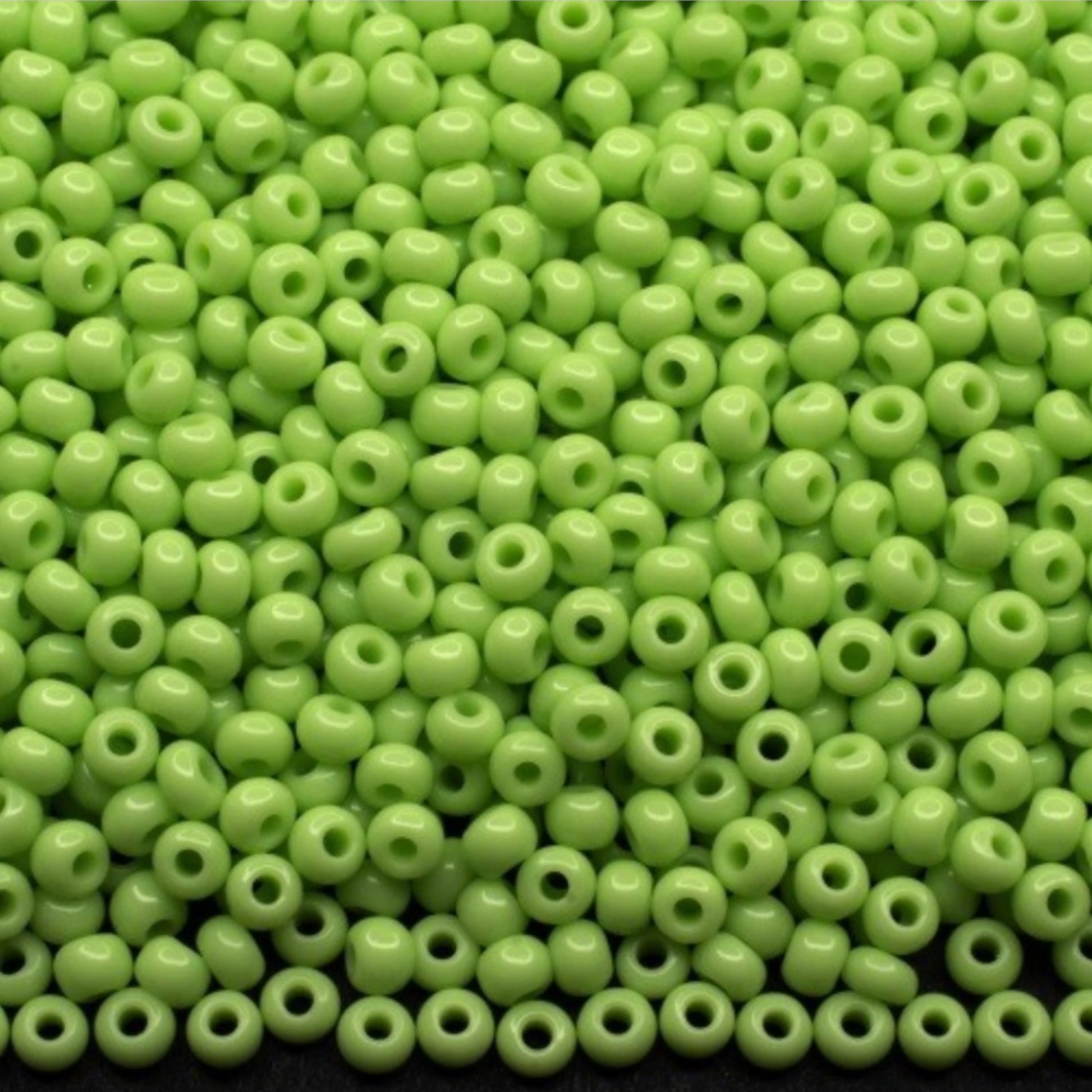 6/0 53410 Preciosa Czech Glass Perler Rocailles 4.1mm. Grøn Opaque Naturlig.