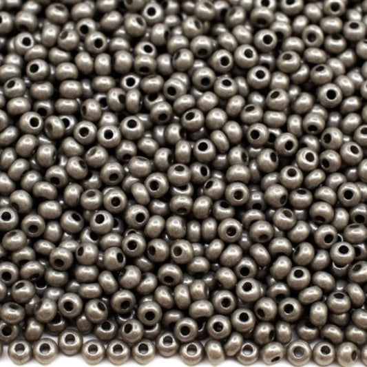 6/0 16749 Preciosa tschechische Glasperlen Rocailles 4.1mm. Kreide Metallic Grau.