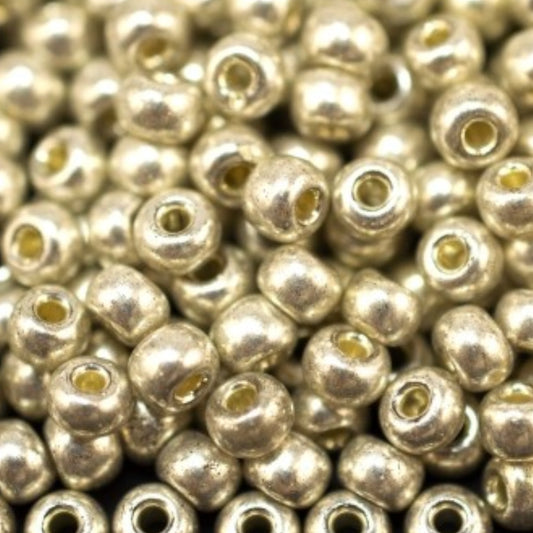6/0 18302 Preciosa tschechische Glasperlen Rocailles 4.1mm. Silber - Metallisch.