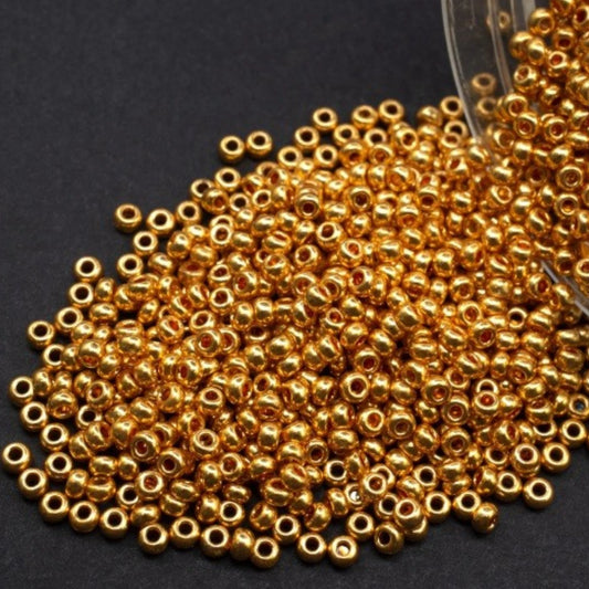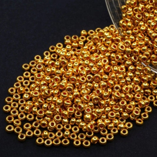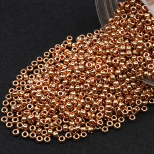 6/0 18389 Preciosa Tschechische Glas Perlen Rocailles 4.1mm. Gold Orange - Metallic.