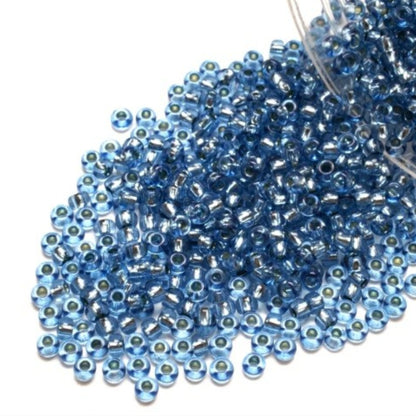 10/0 08236 Preciosa Tschechische Glas Perlen Rocailles 2.3mm. Blau Kristall - Silber Beschichtet.