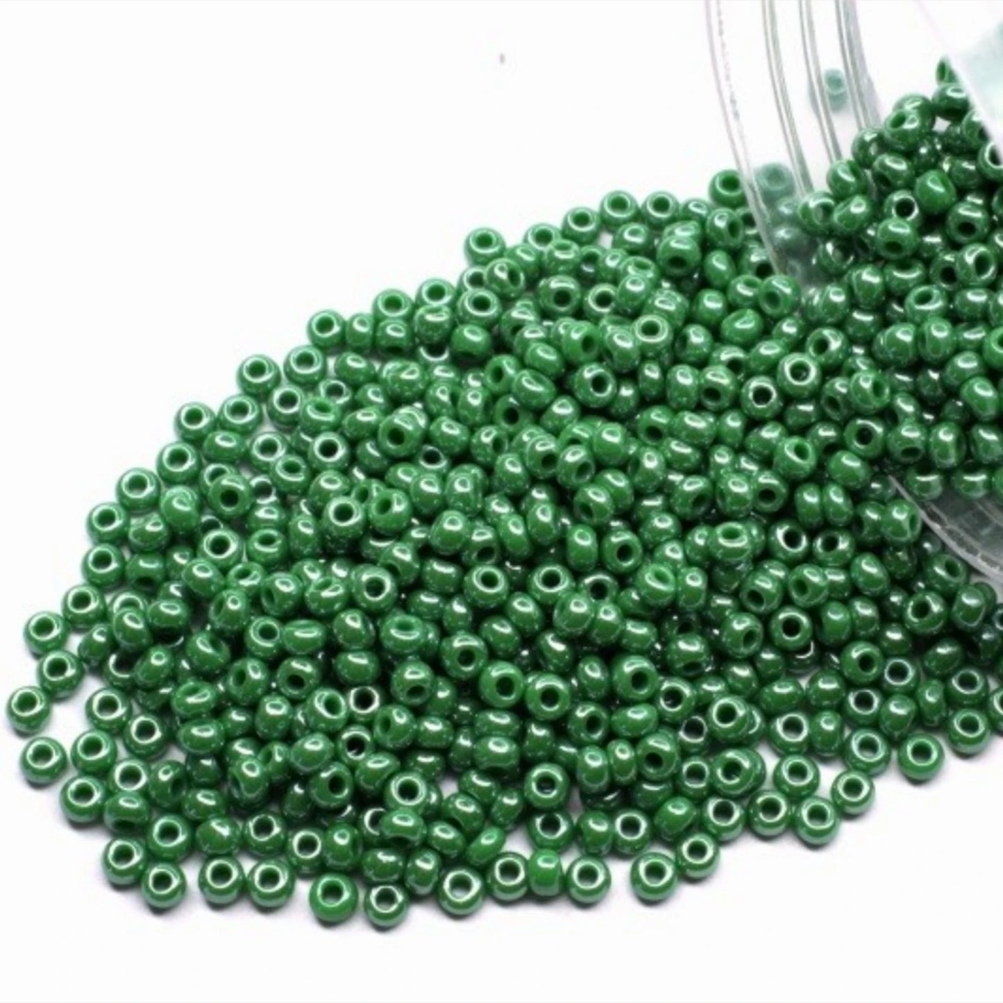 10/0 58250 Preciosa Tschechische Glas Perlen Rocailles 2.3mm. Opak Sfinx grün.
