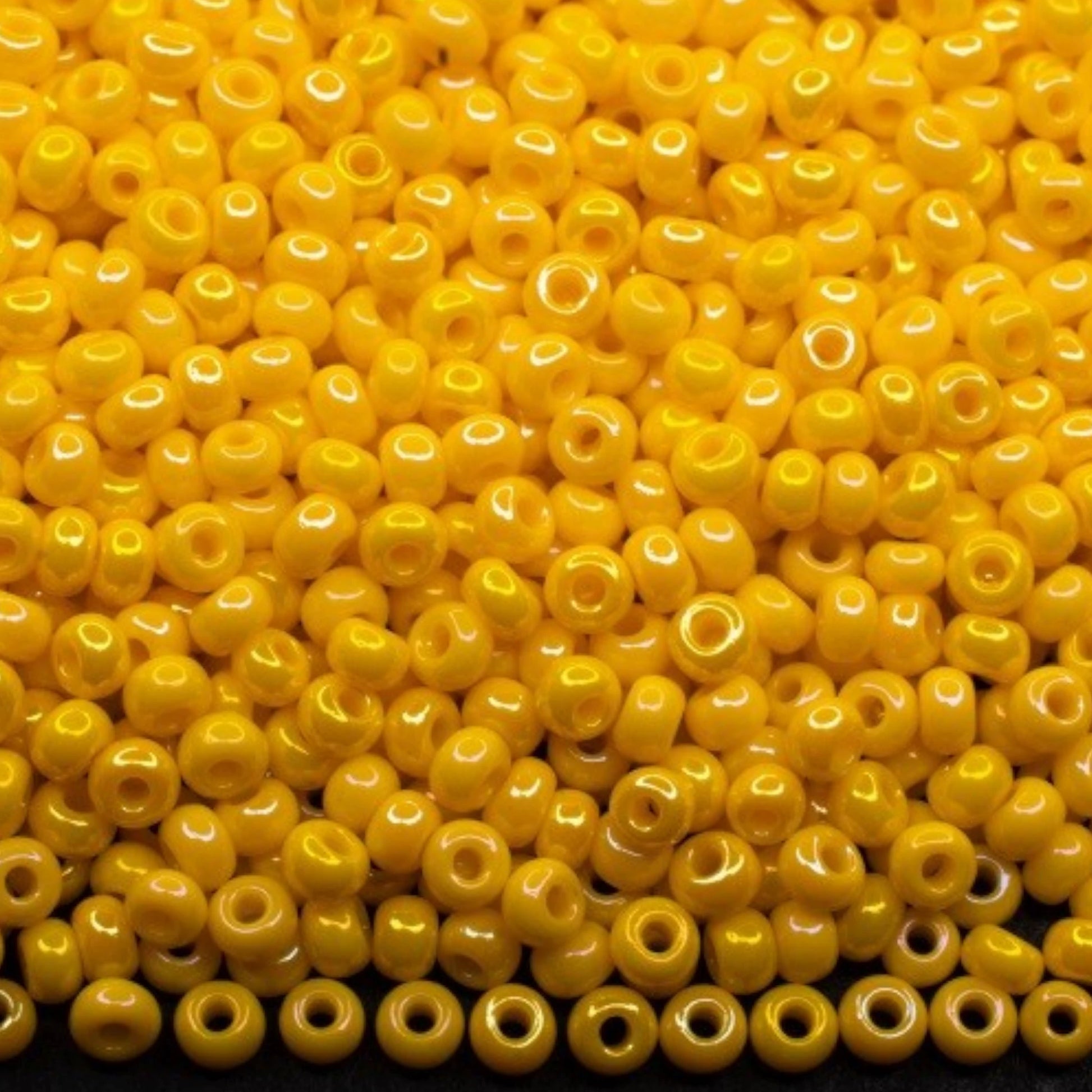 10/0 84130 Preciosa tschechische Glasperlen Rocailles 2.3mm. Opaker Regenbogen Gelb.