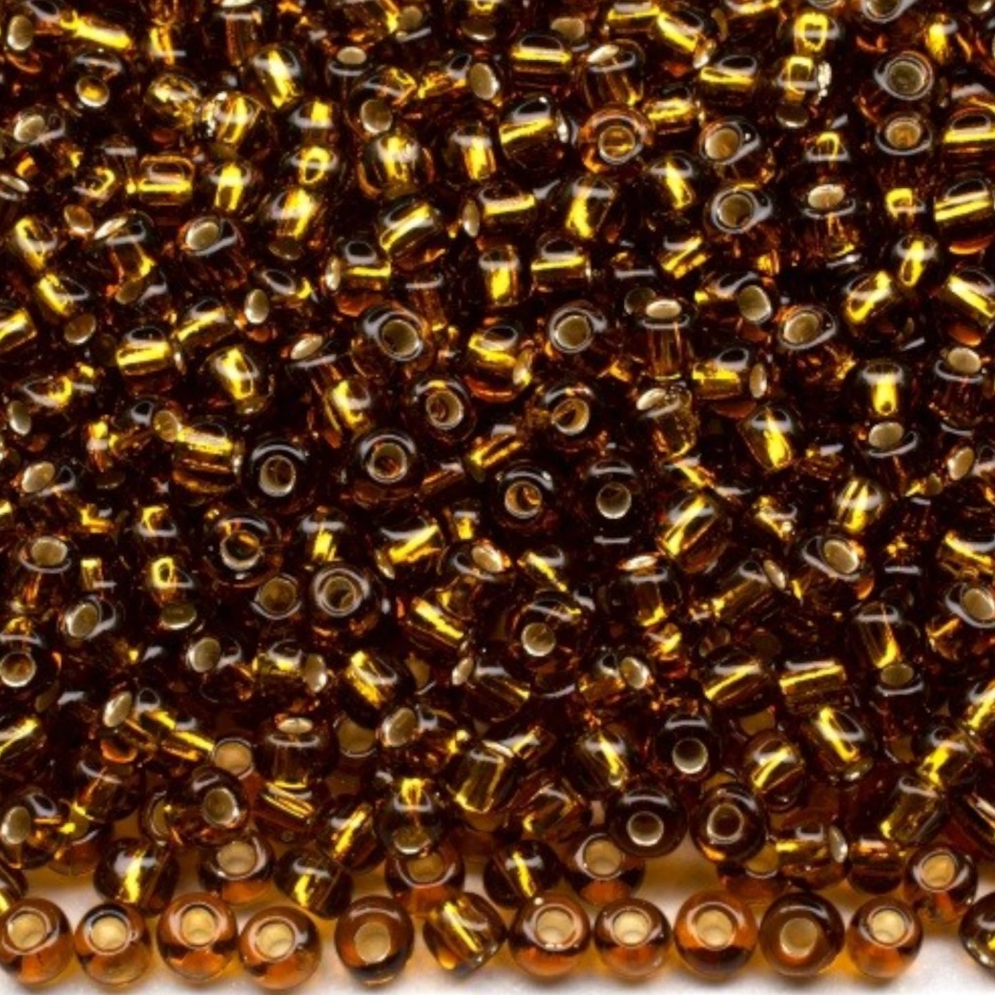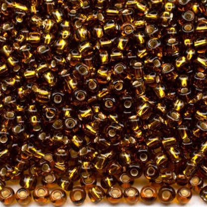 10/0 17090 Preciosa tschechische Glasperlen Rocailles 2.3mm. Braun transparent silberumrandet.