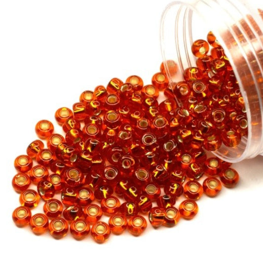 10/0 97000 Preciosa Τσέχικες Γυάλινες Χάντρες Ροκάιλ 2.3mm. Πορτοκαλί διαφανές με ασημένια επένδυση.