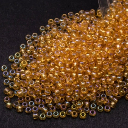 10/0 11020 Preciosa Τσέχικες Γυάλινες Χάντρες Ροκάιλ 2.3mm. Κίτρινο Καφέ Διαφανές Ουράνιο Τόξο.