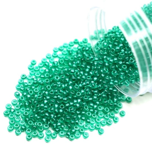 10/0 08358 Preciosa Czech Glass Seed Beads Rocailles 2.3mm. Green Crystal - Terra Pearl.
