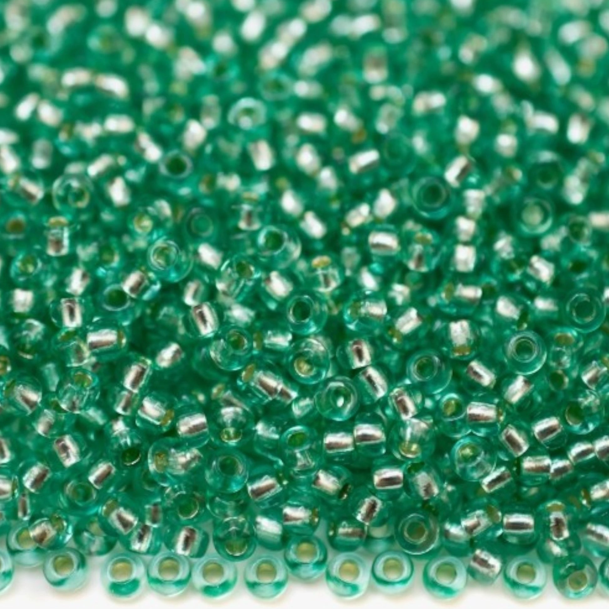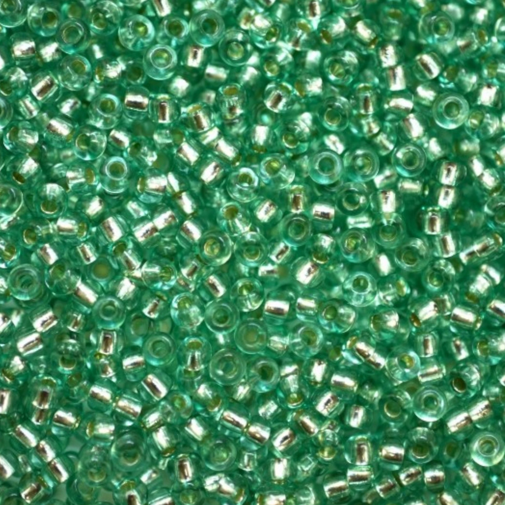 10/0 78164 Preciosa Czech Glass Seed Beads Rocailles 2.3mm. Green 2 dyed Crystal, Silver Lined.