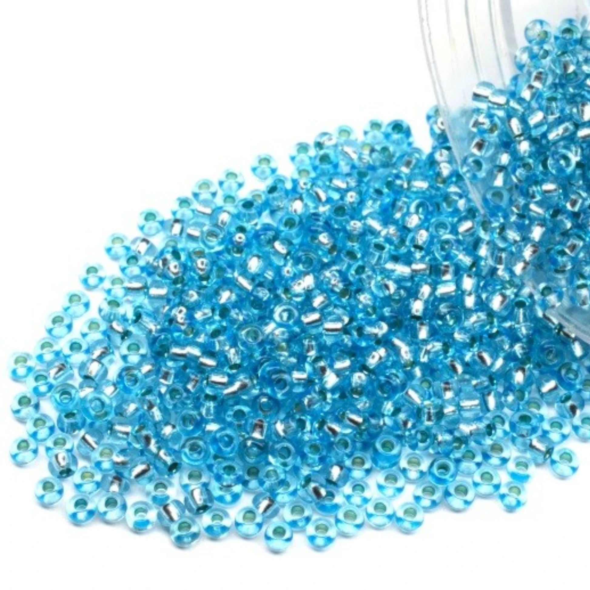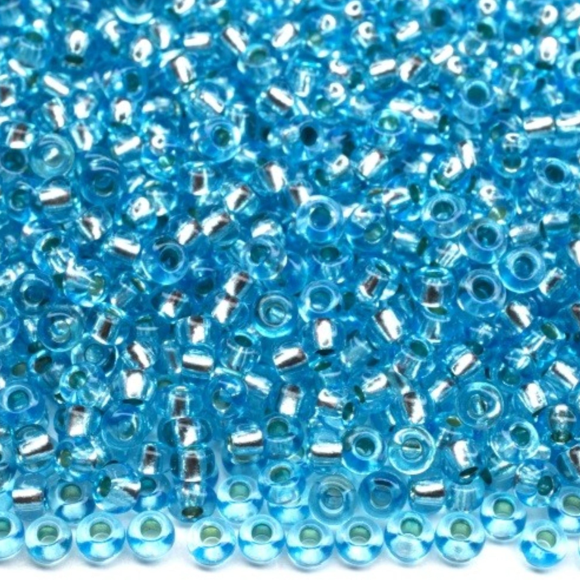 10/0 78134 Preciosa Cuentas de Semilla (Abalorios / Mostacillas) Checas de Vidrio Rocallas 2.3mm. Azul 2 teñido Cristal, Plateado Forrado.