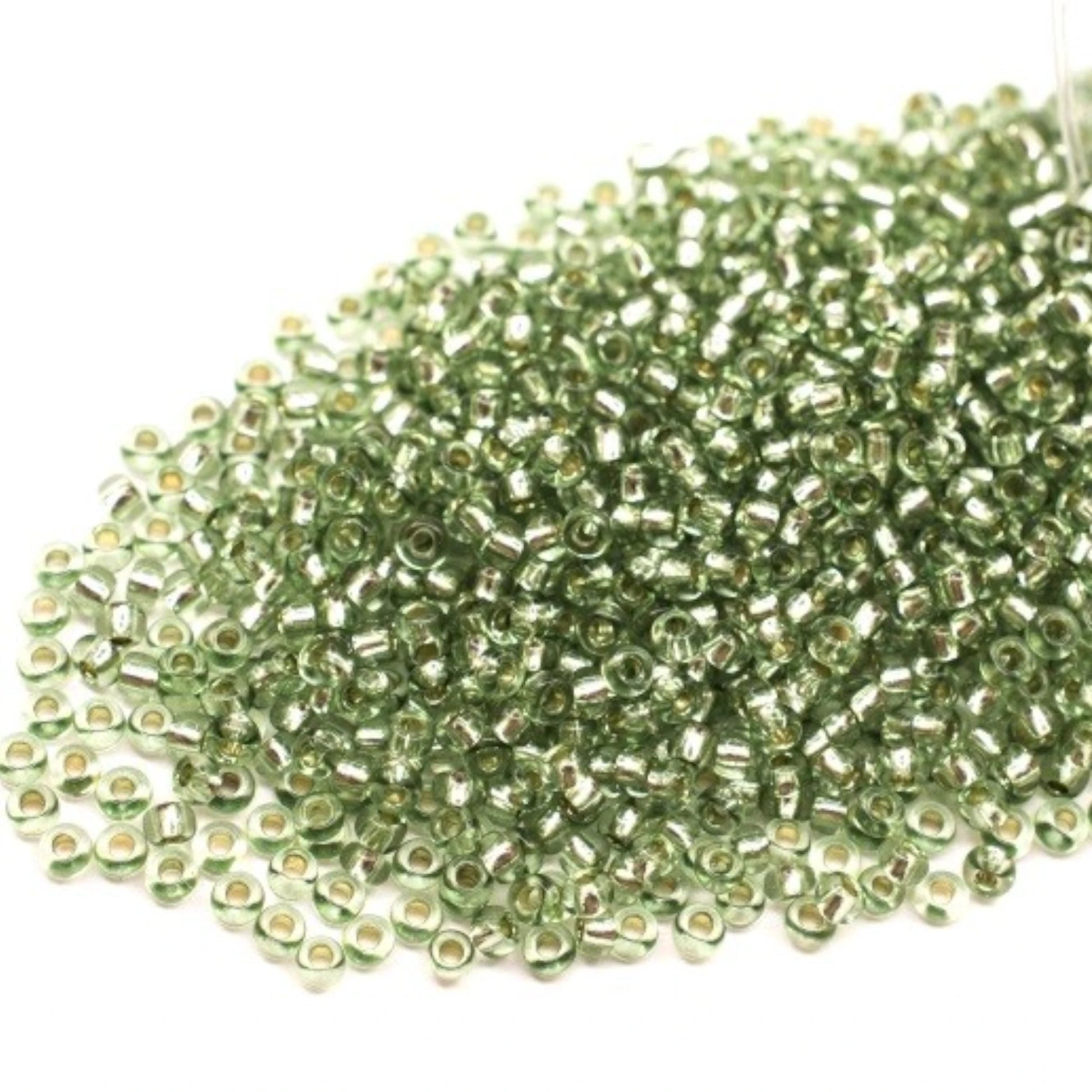 10/0 78163 Preciosa Cuentas de Semilla (Abalorios / Mostacillas) Checas de Vidrio Rocallas 2.3mm. Verde 2 teñido Cristal, Plateado Interior.