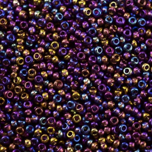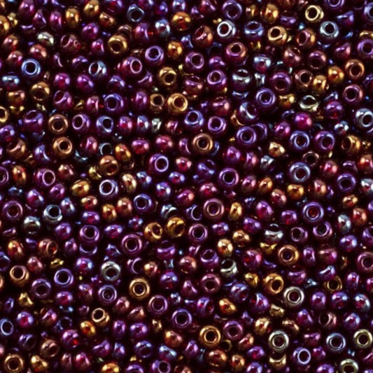 10/0 91120 Preciosa Cseh Üveg Magtartalmú Gyöngyök (Kásagyöngy) Rocailles 2.3mm. Lila Piros Áttetsző Szivárványos.
