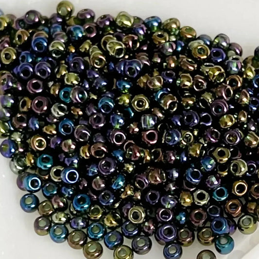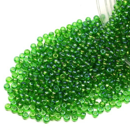 10/0 51120 Preciosa Cseh Üveg Magtartalmú Gyöngyök (Kásagyöngy) Rocailles 2.3mm. Zöld Áttetsző Szivárvány.