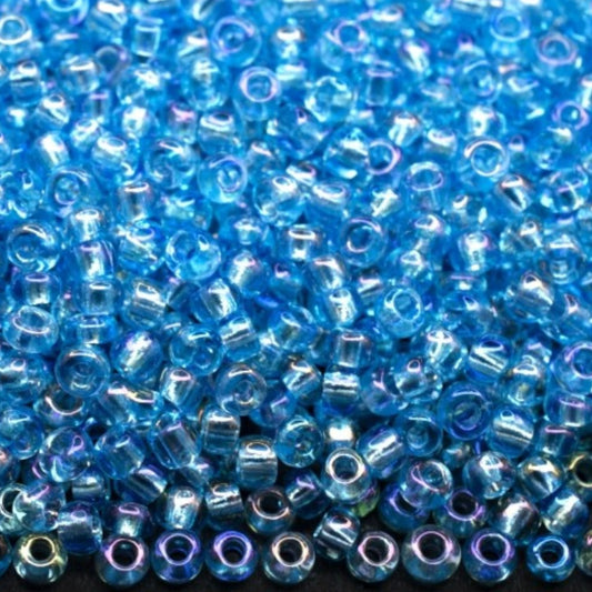 10/0 61010 Preciosa Cseh Üveg Magtartalmú Gyöngyök (Kásagyöngy) Rocailles 2.3mm. Világoskék Áttetsző Szivárványos.