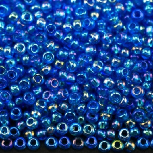 10/0 61150 Preciosa Cseh Üveg Magtartalmú Gyöngyök (Kásagyöngy) Rocailles 2.3mm. Kék Áttetsző Szivárványos.
