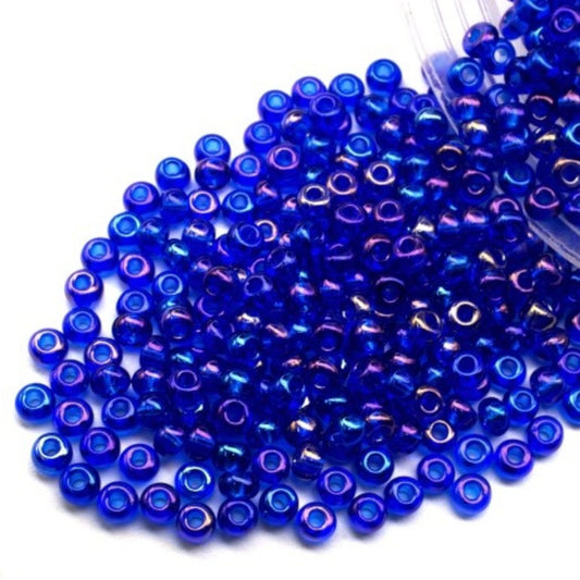10/0 31110 Preciosa Cseh Üveg Magtartalmú Gyöngyök (Kásagyöngy) Rocailles 2.3mm. Kék Áttetsző Szivárványos.