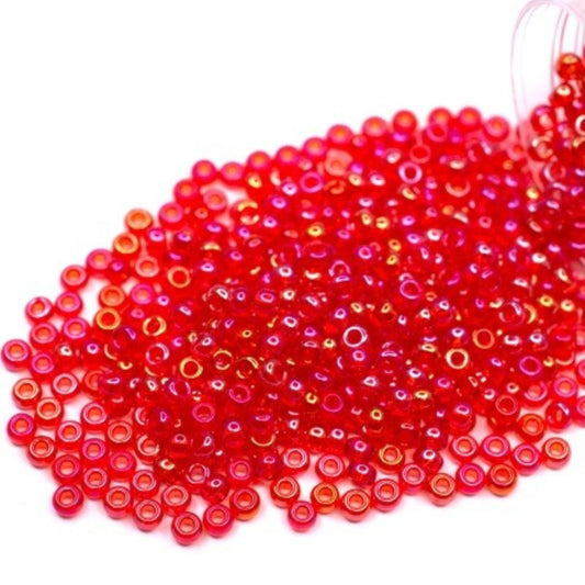 10/0 91050 Preciosa Cseh Üveg Magtartalmú Gyöngyök (Kásagyöngy) Rocailles 2.3mm. Piros Áttetsző Szivárvány.