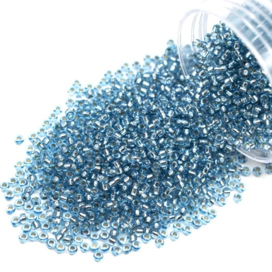 10/0 78132 Preciosa Cseh Üveg Magtartalmú Gyöngyök (Kásagyöngy) Rocailles 2.3mm. Kék 2 festett Kristály, Ezüst Béléssel.