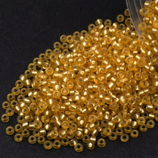 10/0 17020matte Preciosa Perline di vetro ceco Rocaille 2.3mm. Giallo trasparente con rivestimento argento.