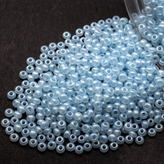 10/0 02633 Preciosa Perline di vetro ceco Rocaille 2.3mm. Alabastro azzurro chiaro - Tinto Solgel.
