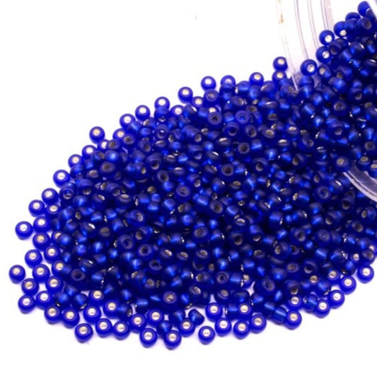 10/0 37080 matte Preciosa Czech Glass Perline Rocaille 2.3mm. Blu trasparente con rivestimento argento.