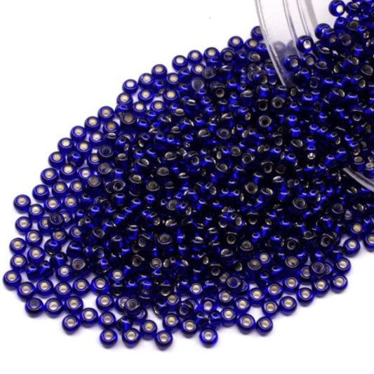 10/0 37100 Preciosa Perline di Vetro Ceco Rocaille 2.3mm. Blu trasparente con rivestimento argento.