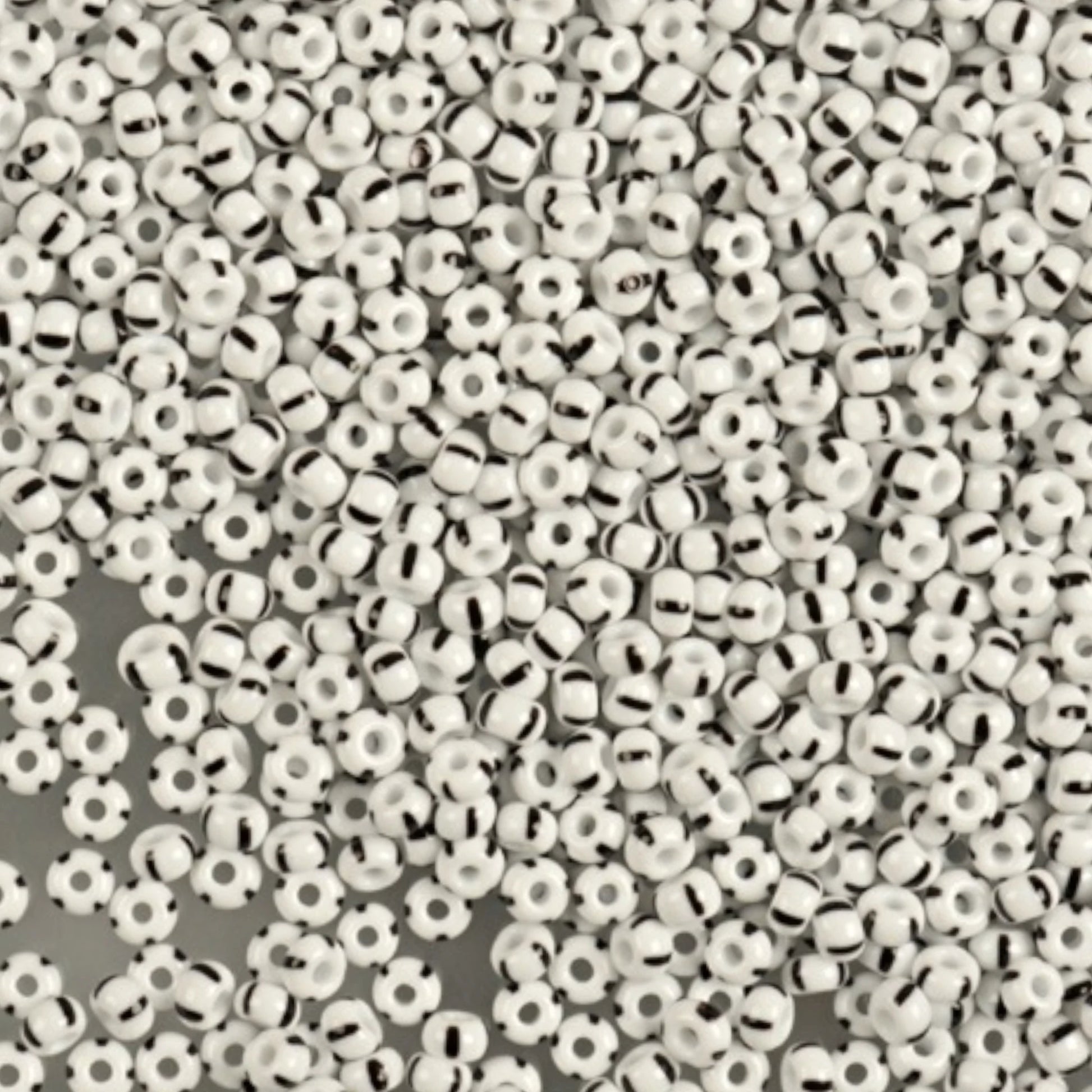 10/0 03590 Preciosa Tsjekkiske glass små perler Rocailleperler 2.3mm. Hvit svart ugjennomsiktig stripete.