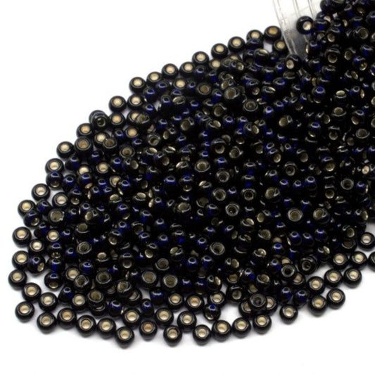 10/0 37110 Preciosa Tsjekkiske glass små perler Rocailleperler 2.3mm. Blå transparent sølvbelagt.