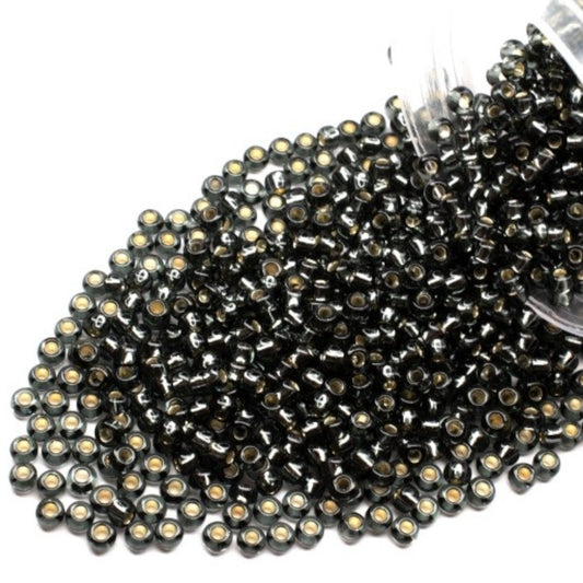 10/0 47010 Preciosa Tsjekkiske glass små perler Rocailleperler 2.3mm. Svart transparent sølvbelagt.