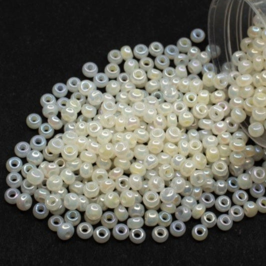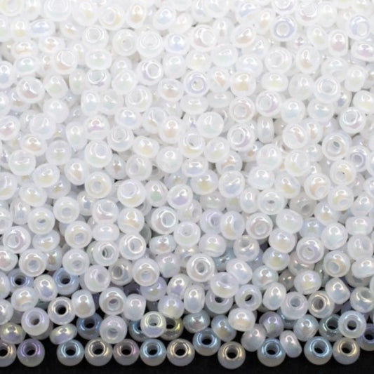 10/0 57205 Preciosa Tsjekkiske glass små perler Rocailleperler 2.3mm. Opaque regnbuehvit.
