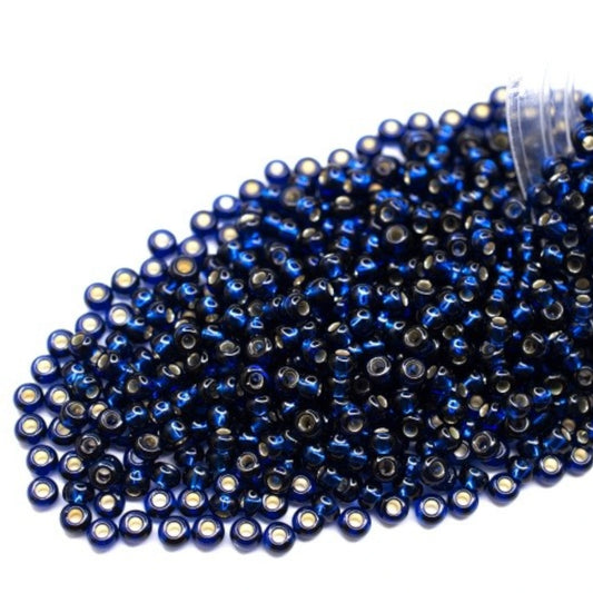 10/0 67100 Preciosa Tsjekkiske glass små perler Rocailleperler 2.3mm. Blå transparent sølvfôret.