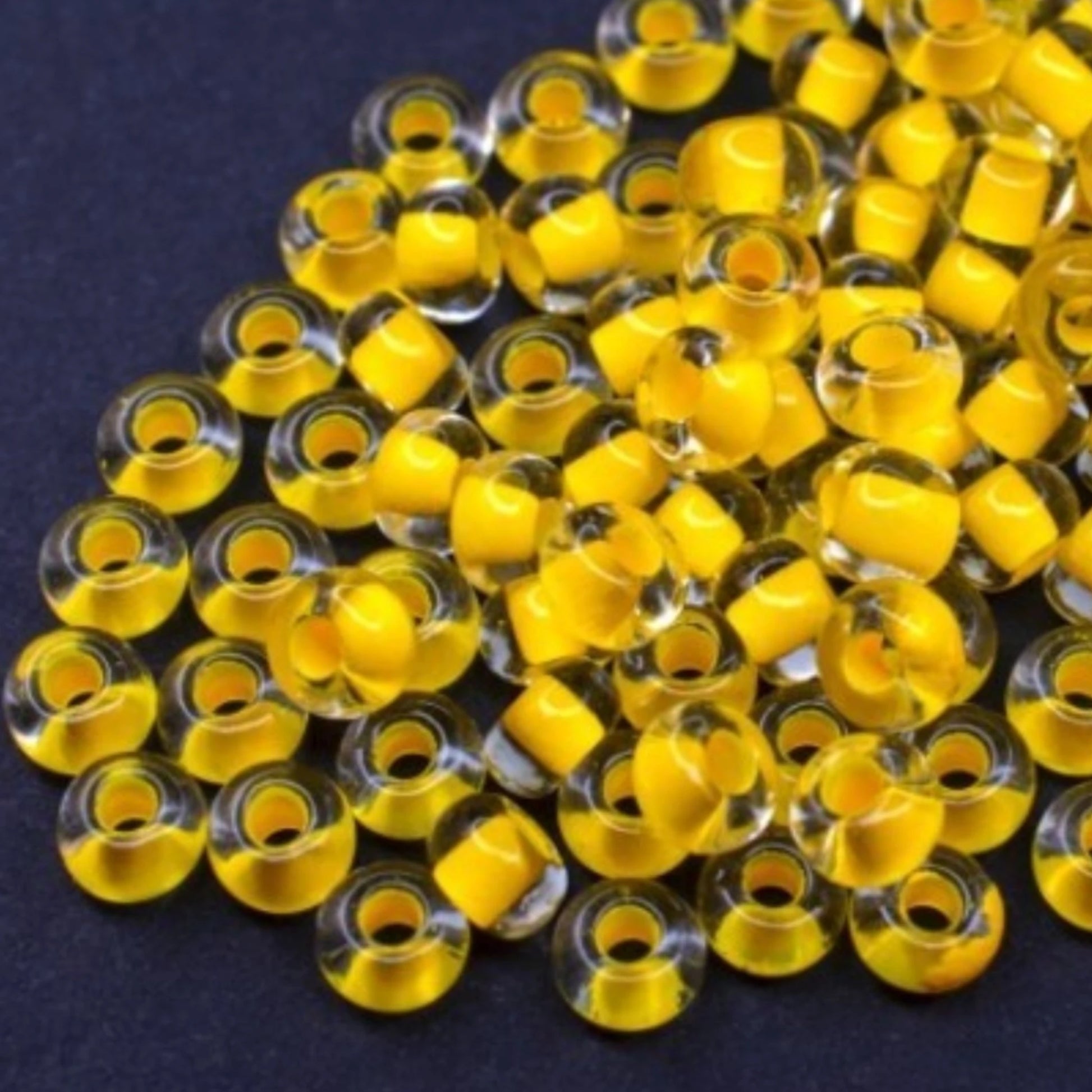 6/0 08A86 Preciosa Czech Glass Koraliki Rocailles 4.1mm. Kryształowe terra intensywne żółte wykończenie.