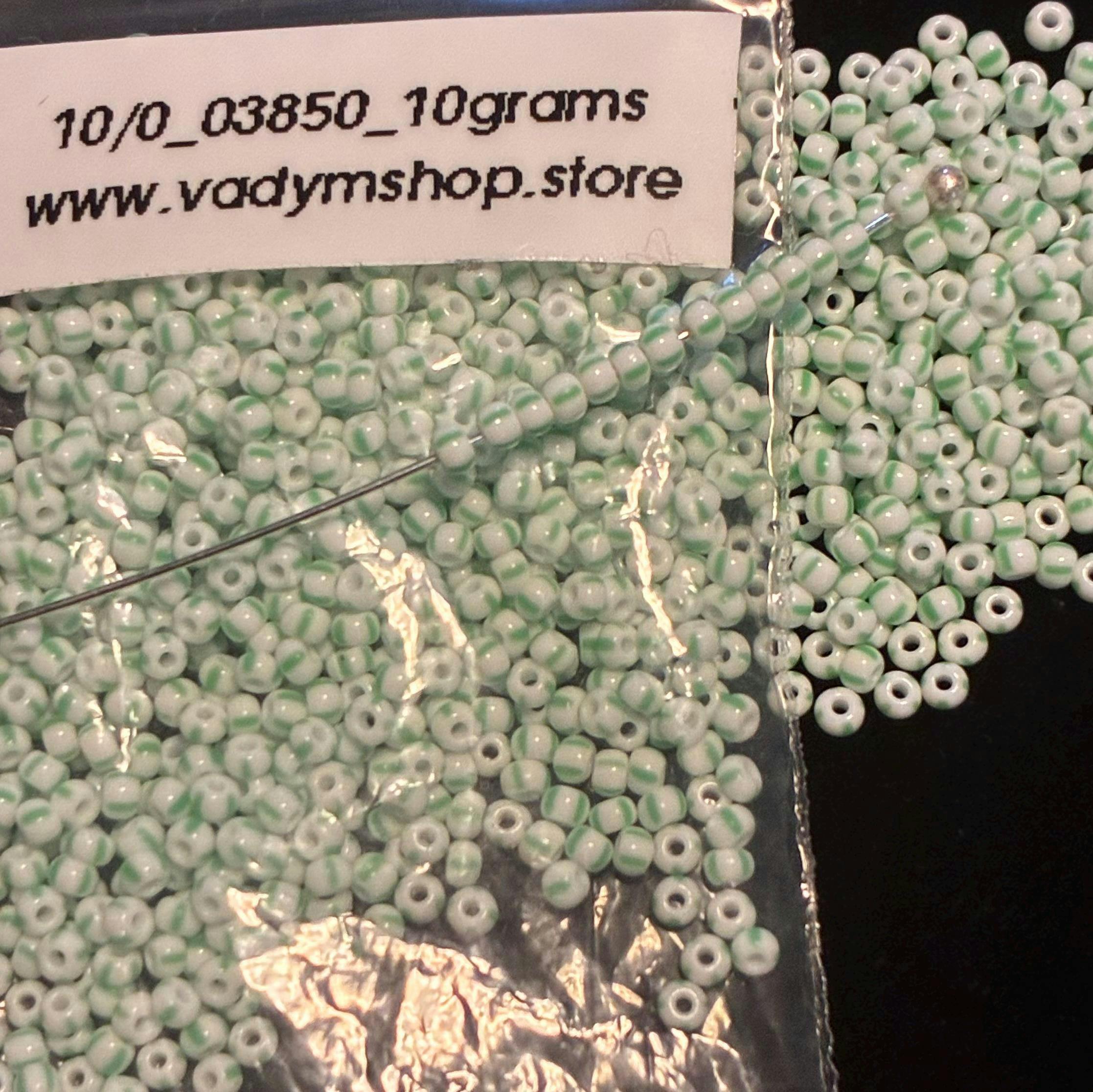 10/0 03851 Preciosa Czech Glass Koraliki Rocailles 2.3mm. Białe Zielone Nieprzezroczyste Pasiaste.