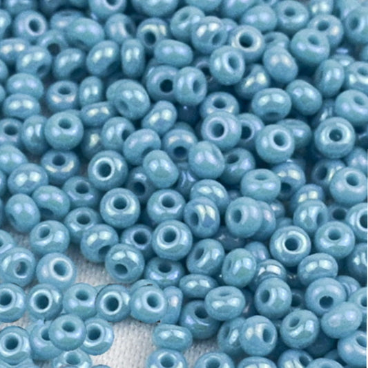 10/0 64020 Preciosa Czech Glass Koraliki Rocailles 2.3mm. Nieprzezroczyste tęczowe jasnoniebieskie.