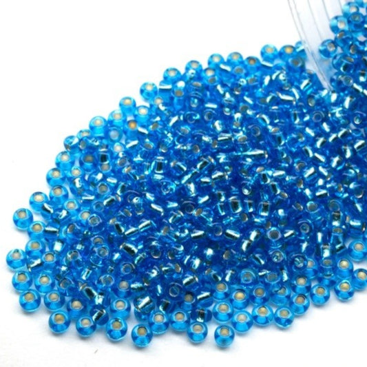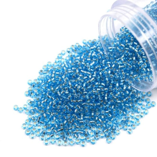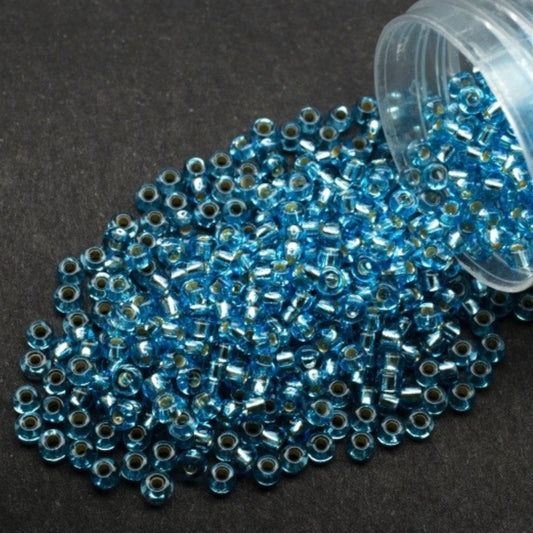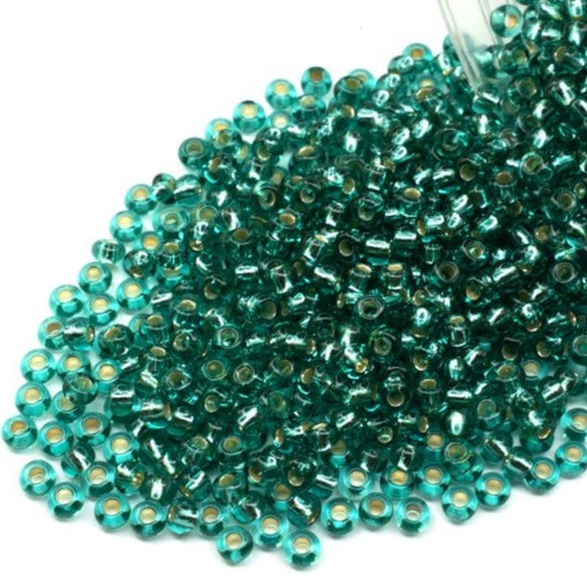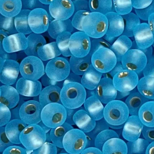 10/0 67210matte Preciosa Czech Glass Koraliki Rocailles 2.3mm. Niebiesko-zielone przezroczyste z srebrnym wykończeniem.