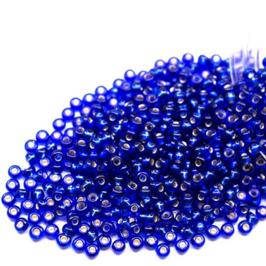 10/0 67100 Preciosa Czech Glass Koraliki Rocailles 2.3mm. Niebieskie przezroczyste z srebrną powłoką.