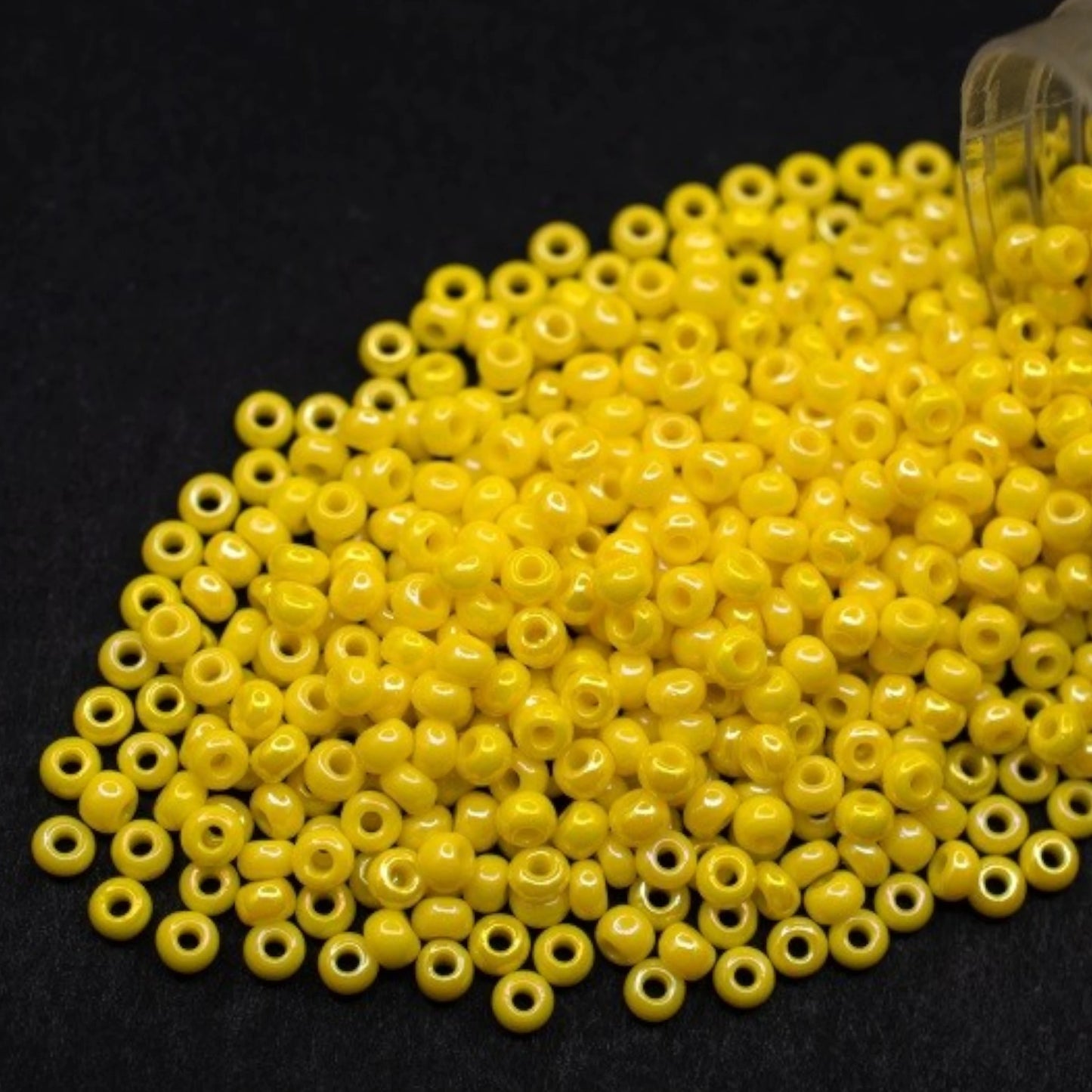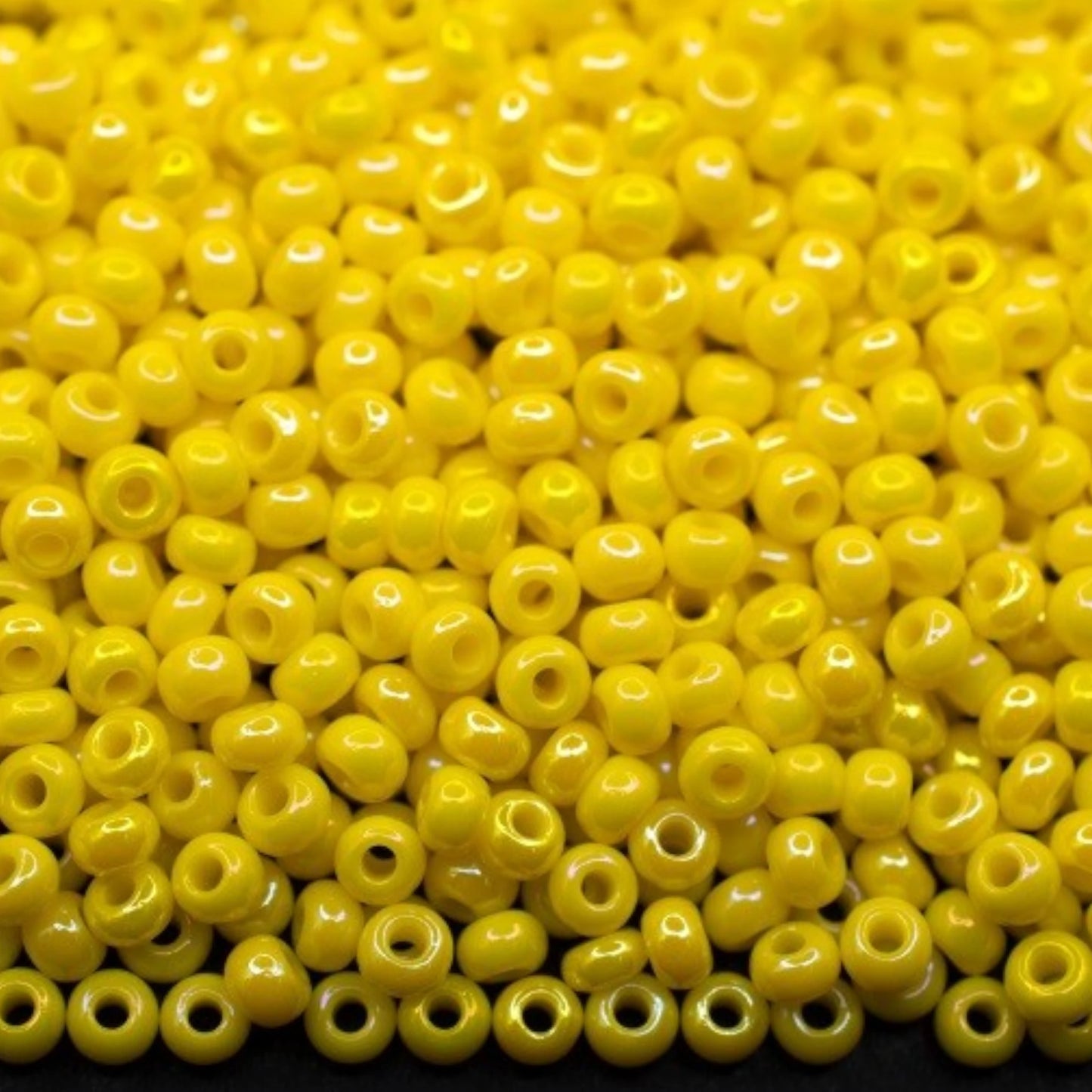10/0 84110 Preciosa Czech Glass Seed Beads Rocailles 2.3mm. Opaque rainbow yellow.