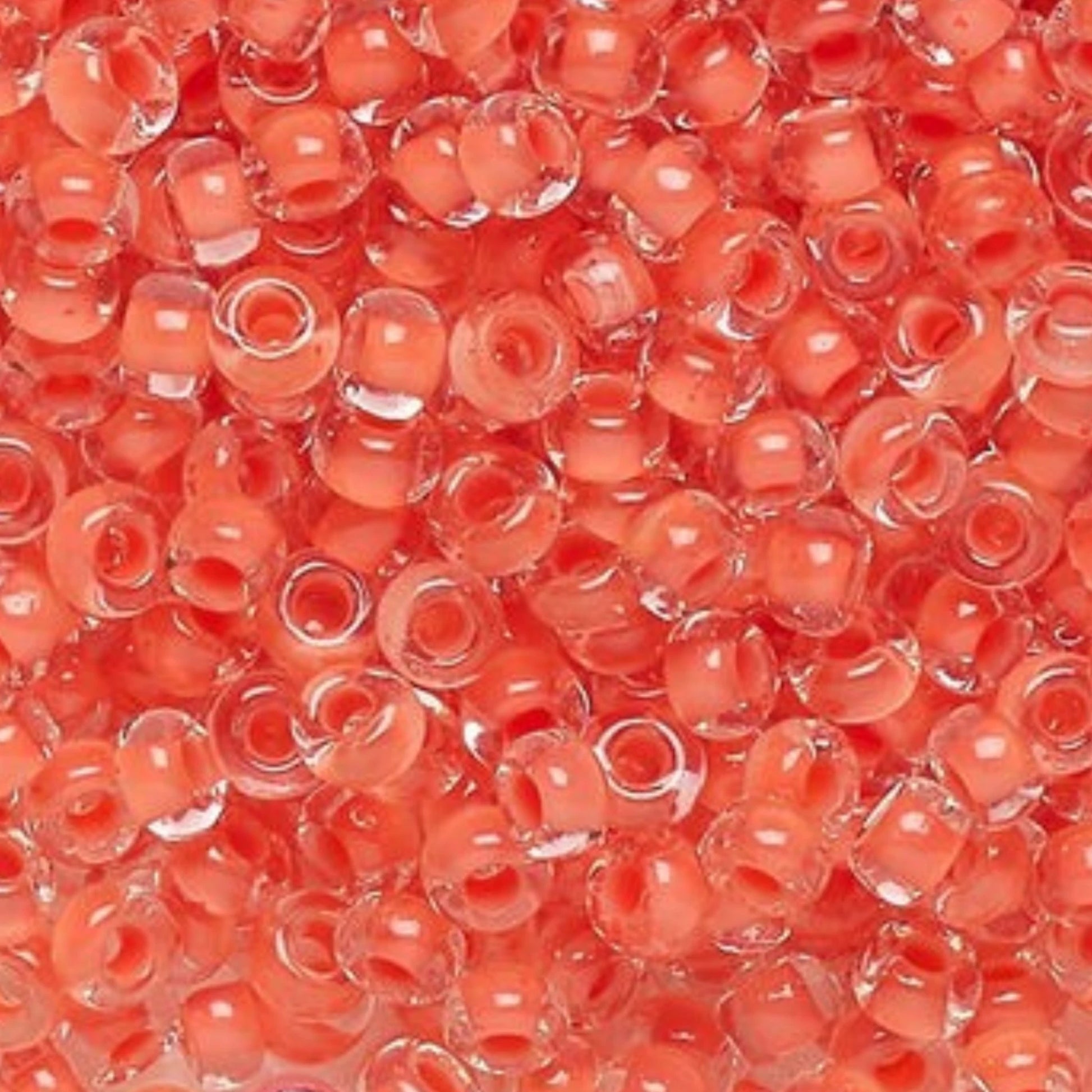 6/0 08A91 Preciosa Czech Glass Seed Beads Rocailles 4.1mm. Crystal terra intensive orange lining.