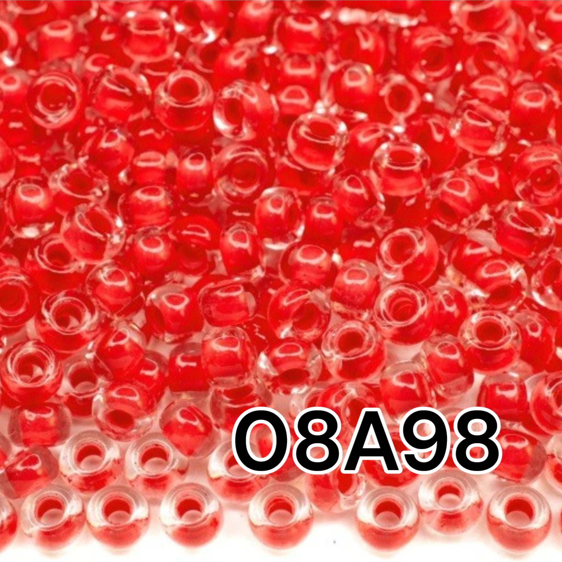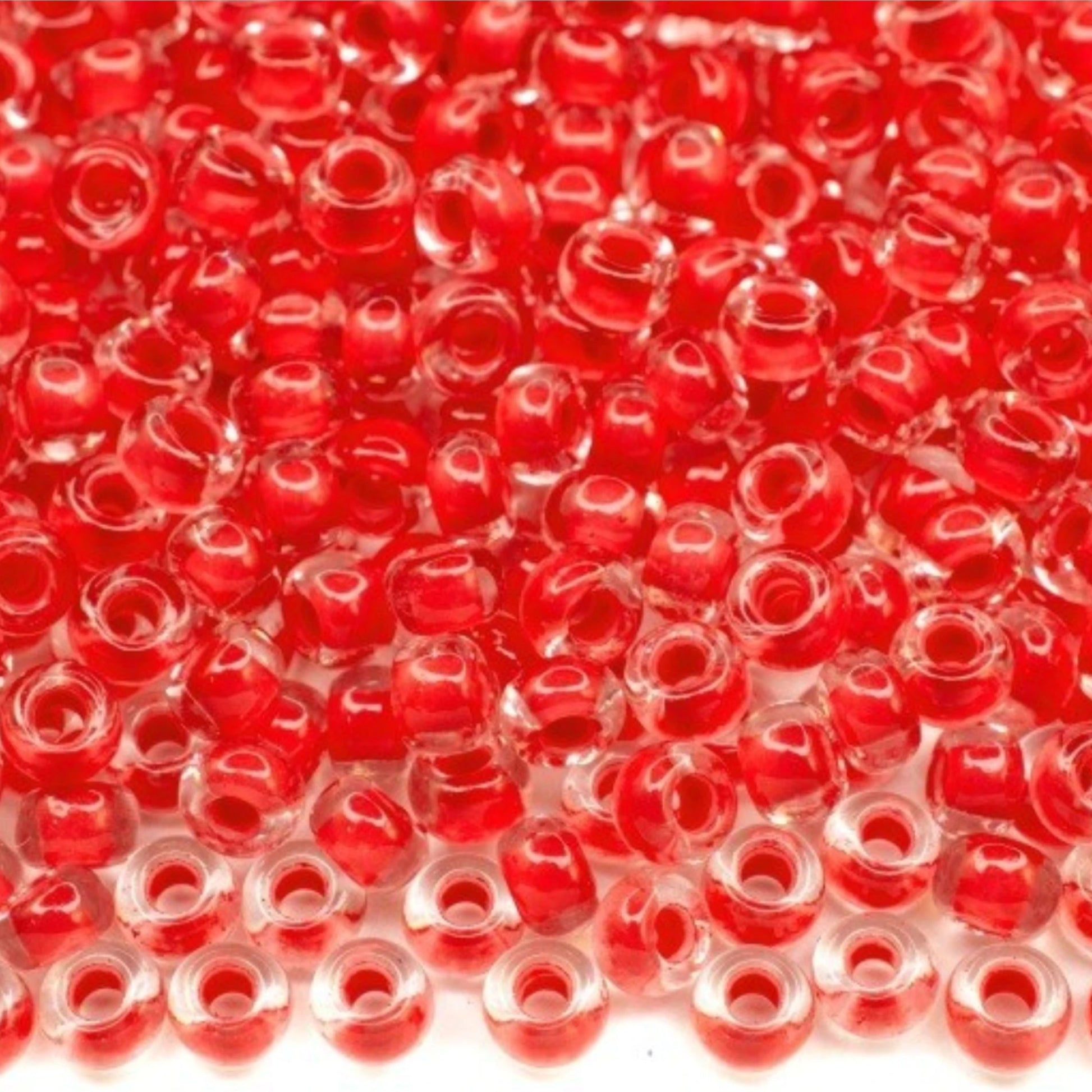 6/0 08A98 Preciosa Czech Glass Seed Beads Rocailles 4.1mm. Crystal terra intensive red lining.