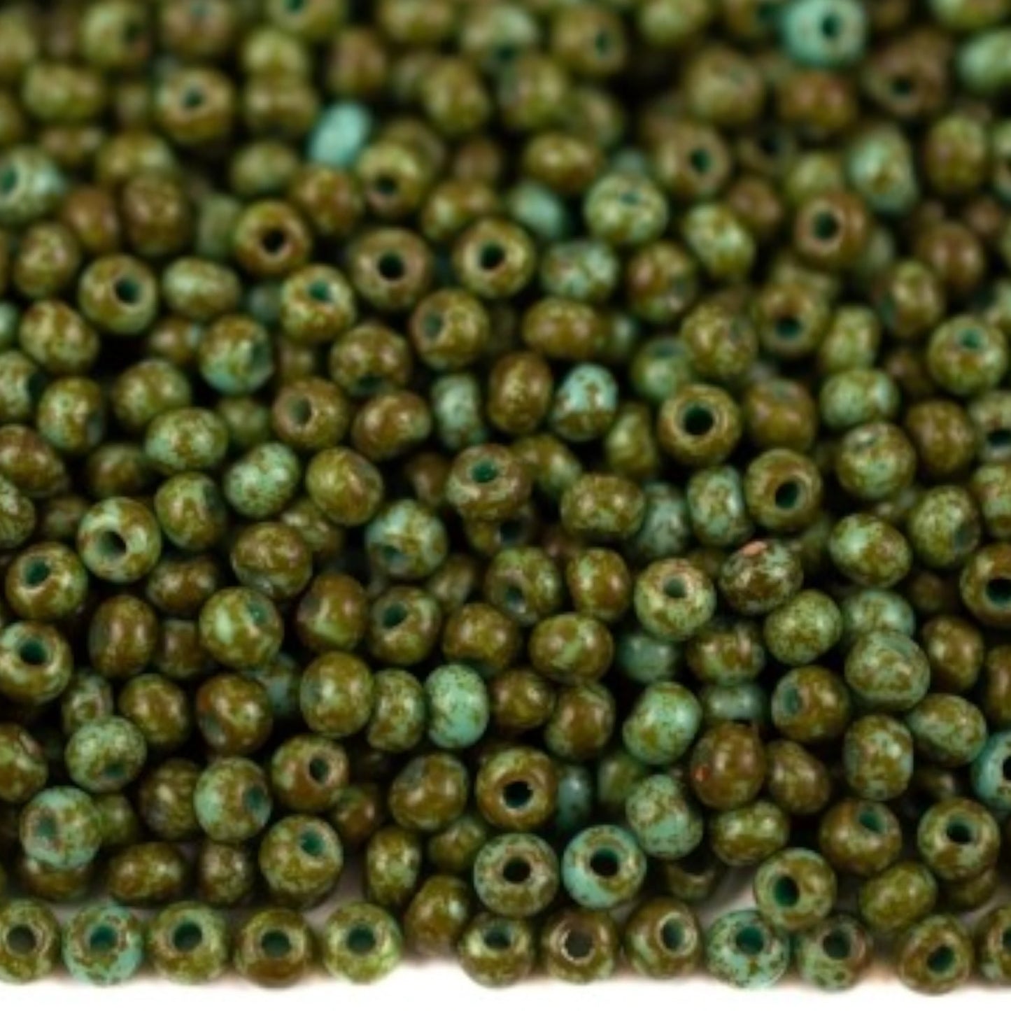 10/0 69130 Preciosa Czech Glass Seed Beads Rocailles 2.3mm. Green Travertin.
