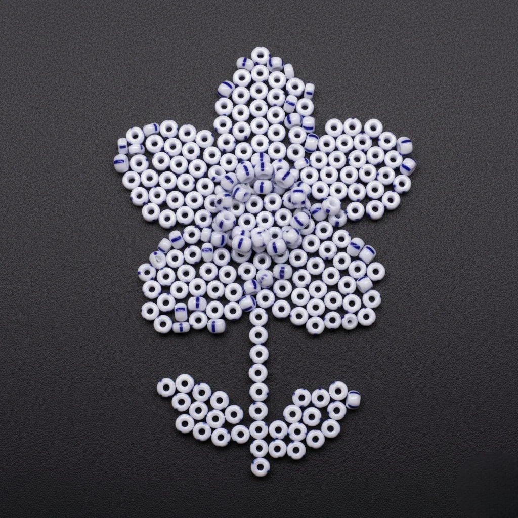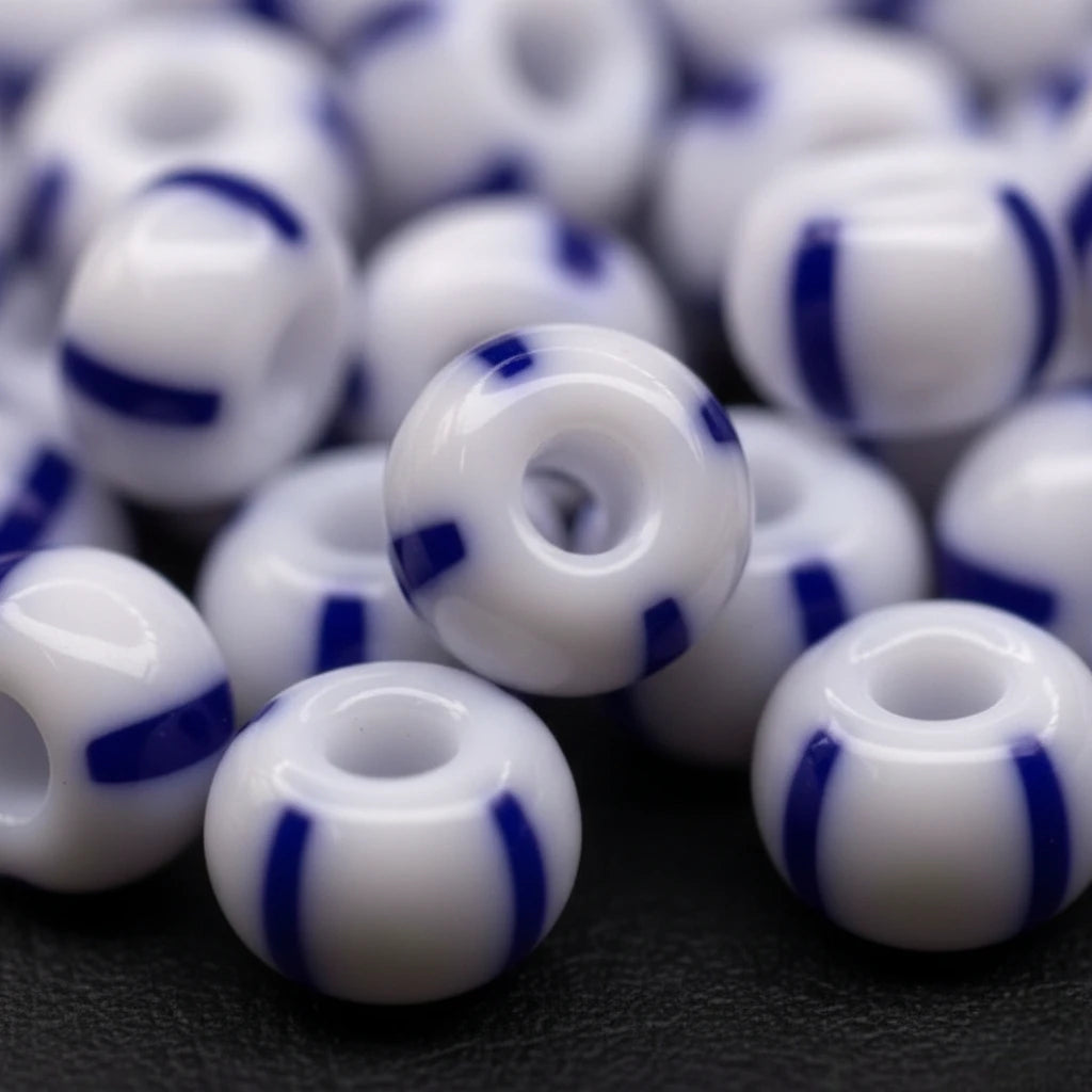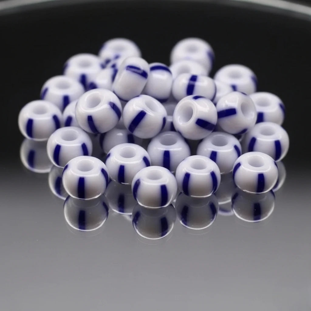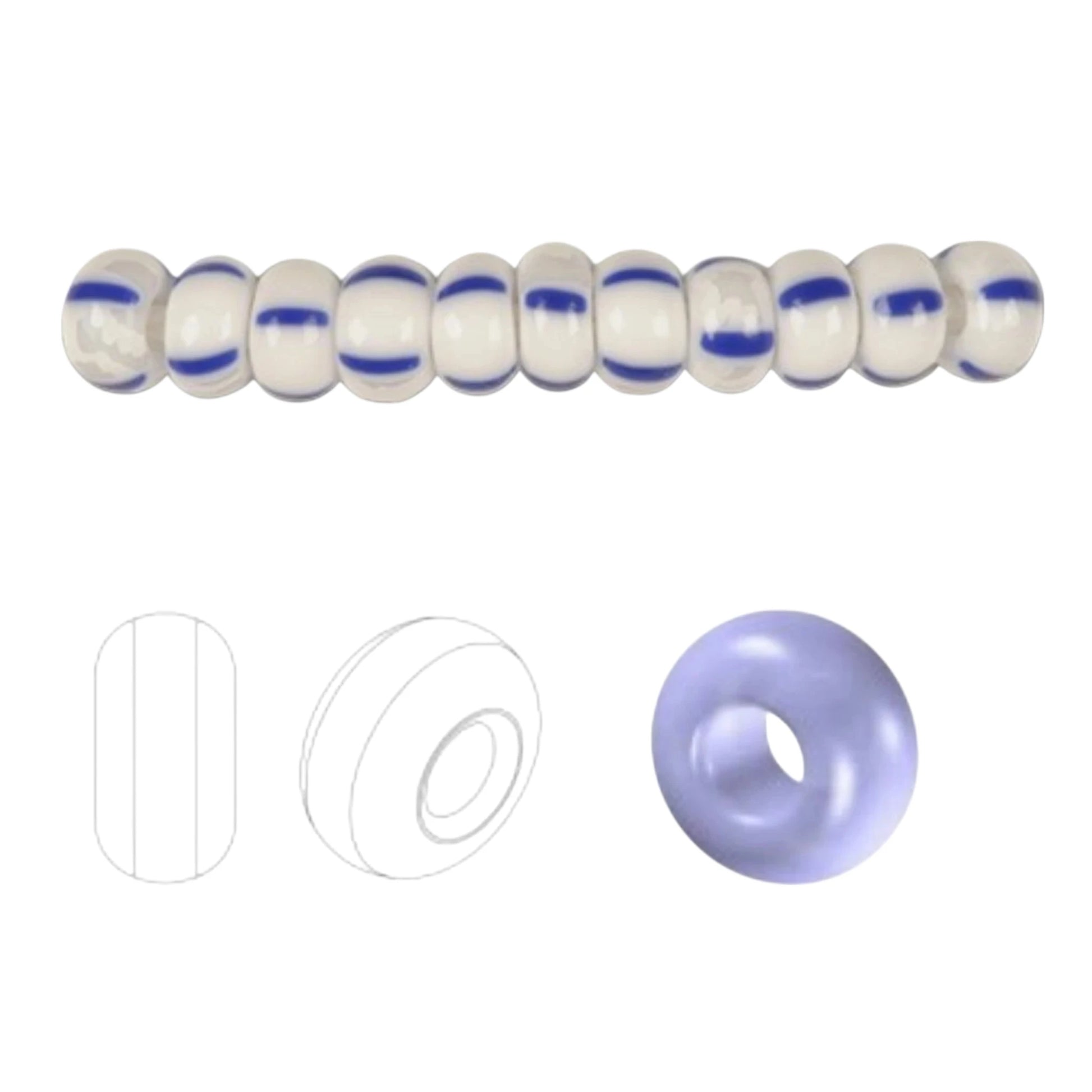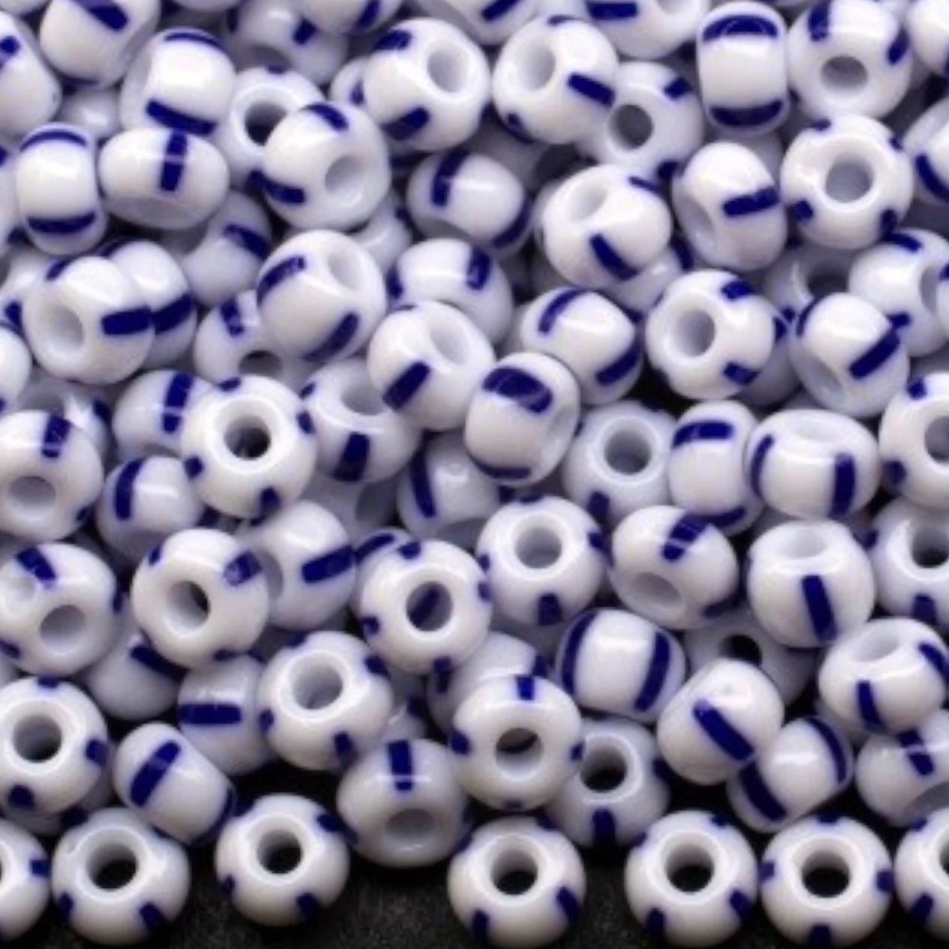 2/0 03330 Preciosa Чешский стеклянный бисер Рокайль 6.1mm. Синие полосы на мелово-белом фоне.