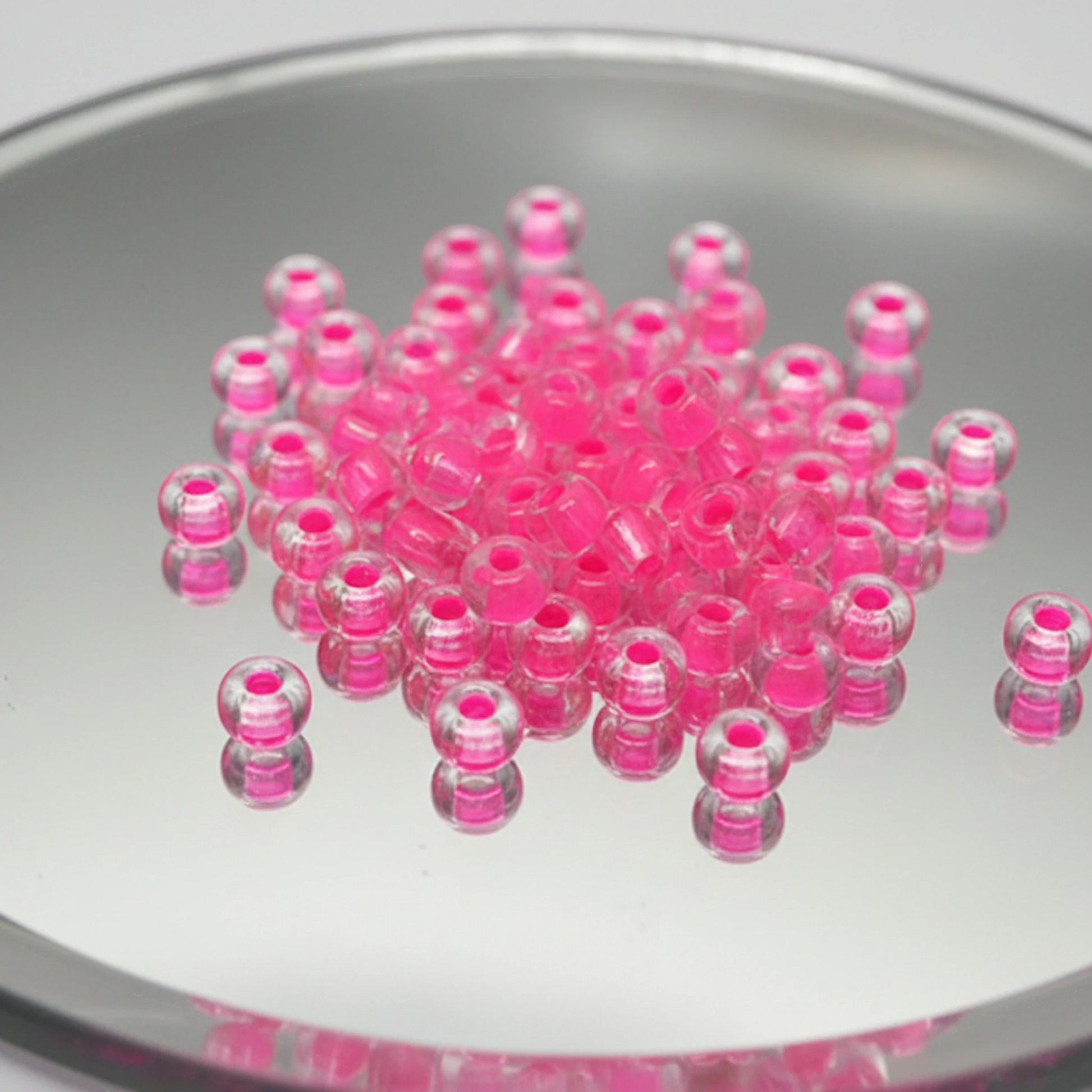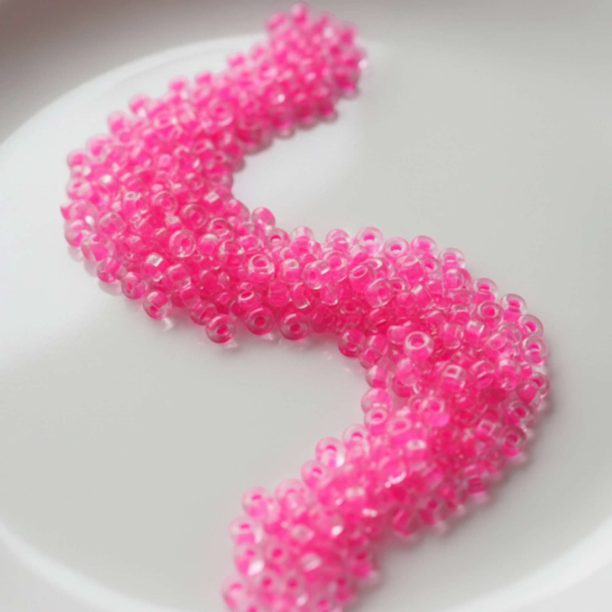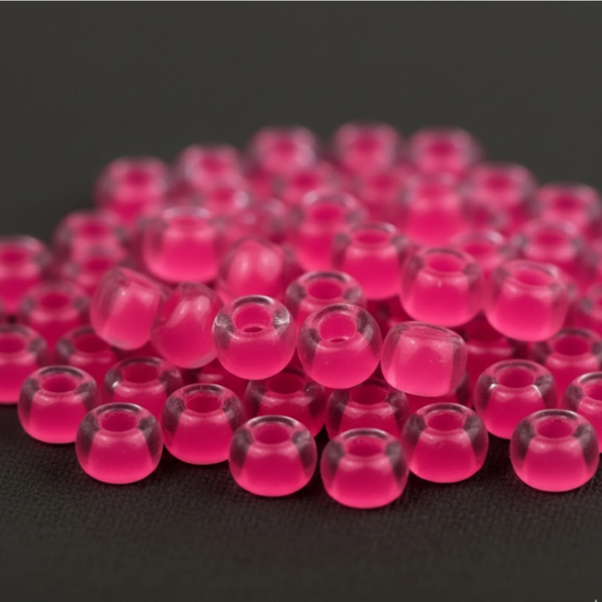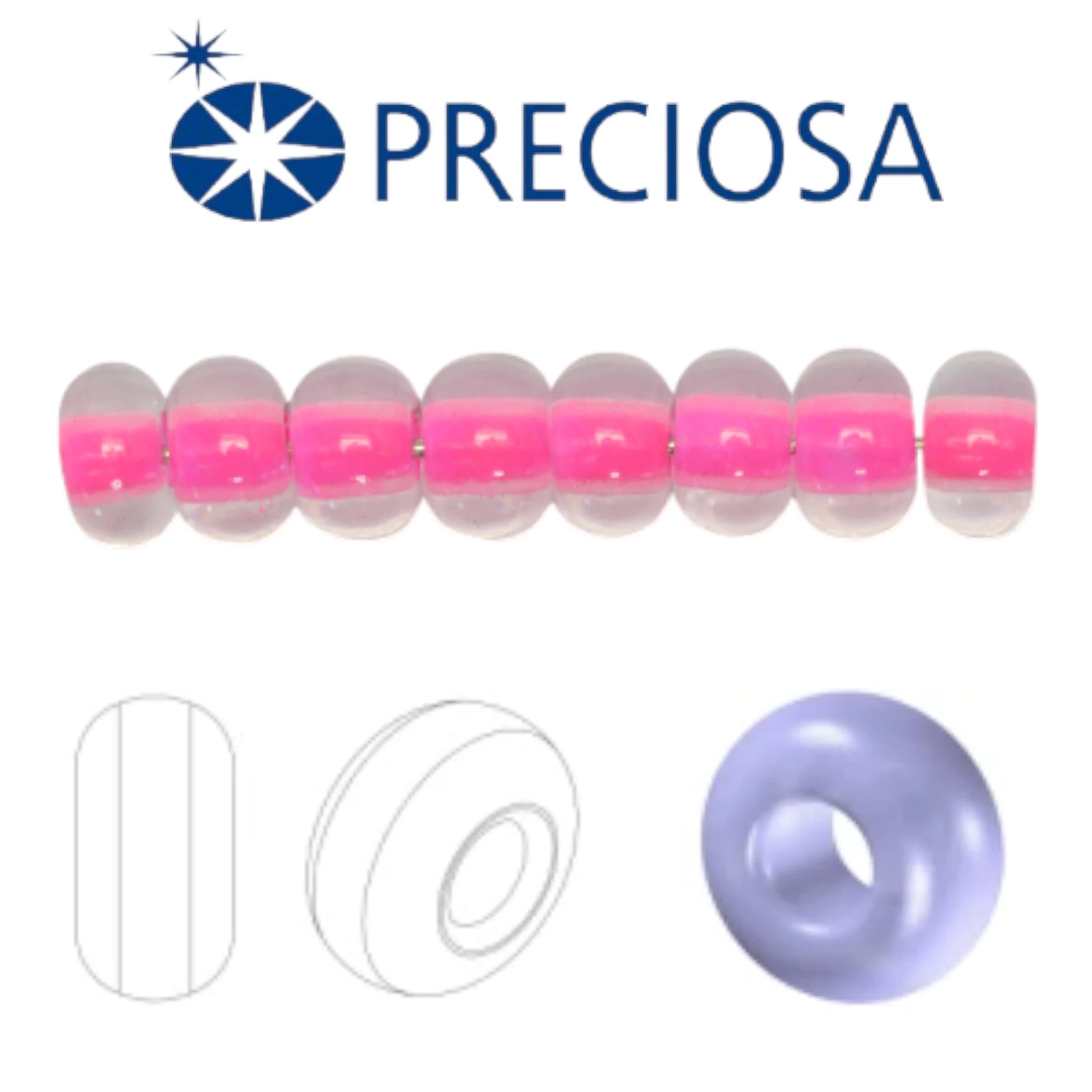 2/0 08777 Preciosa Çek Cam Kum Boncuğu Rocaille Boncuk 6.1mm. Neon Pembe Çizgili.