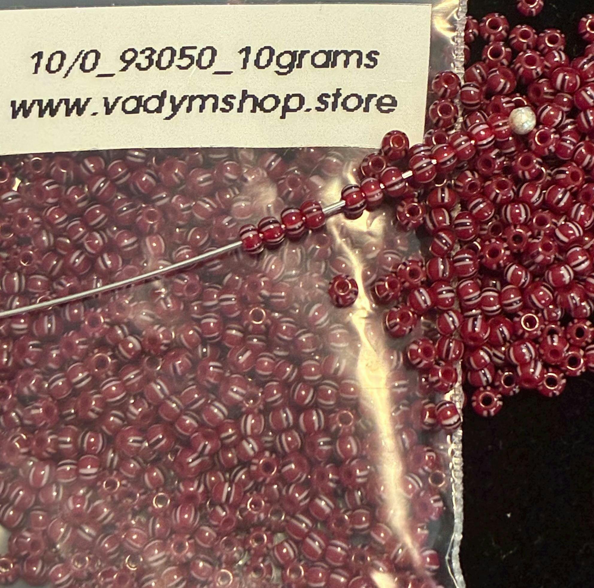 10/0 93050 Preciosa Чеський Скляний Бісер Рокайль 2.3mm. Коричнево-червоні смугасті.