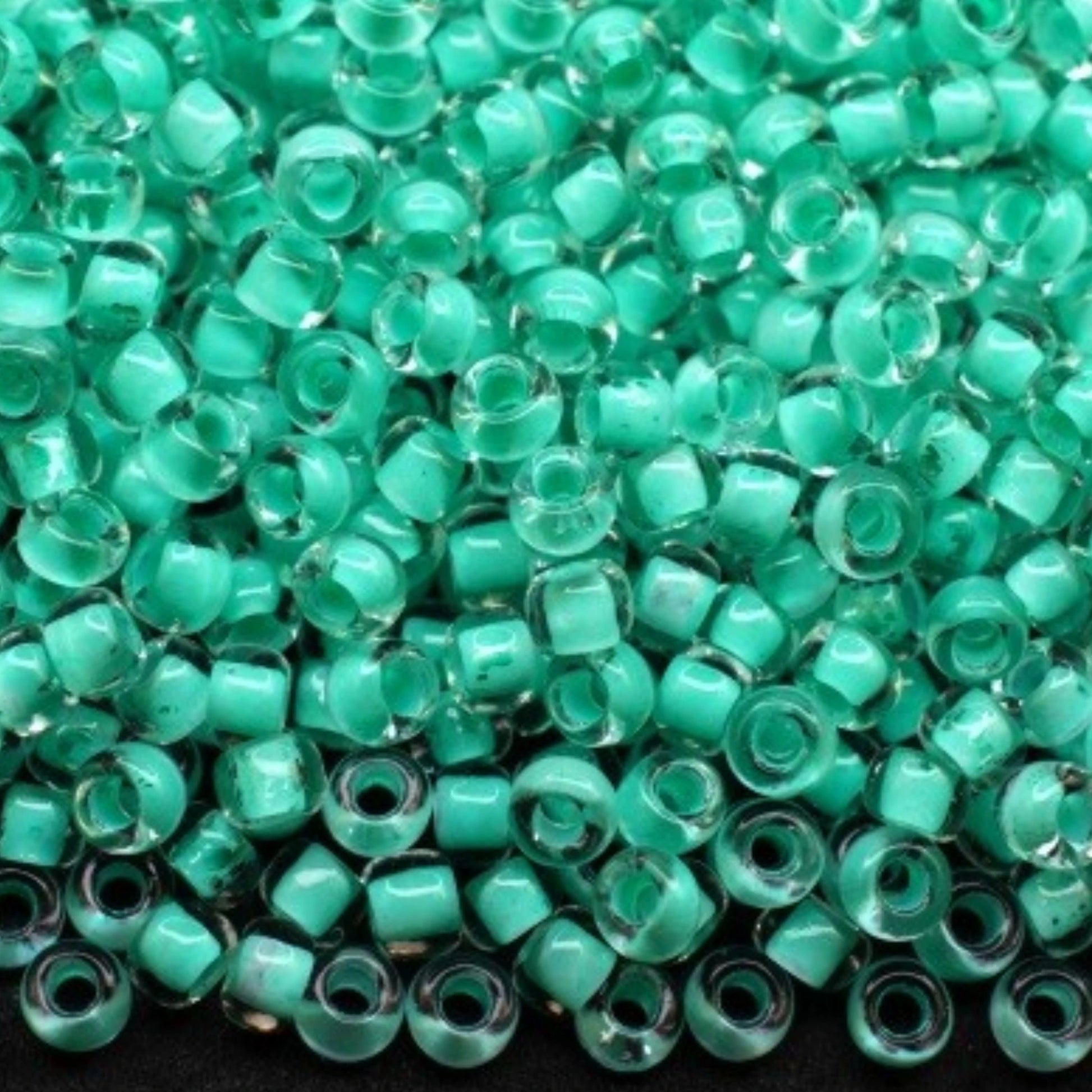 10/0 38353 Preciosa Чеський Скляний Бісер Рокайль 2.3 мм. Кришталевий Колір із Зеленим Покриттям.
